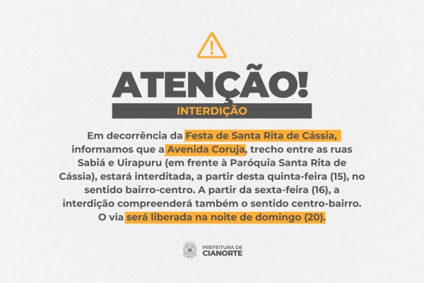AVISO DE INTERDIÇÃO DE TRÂNSITO - Avenida Coruja