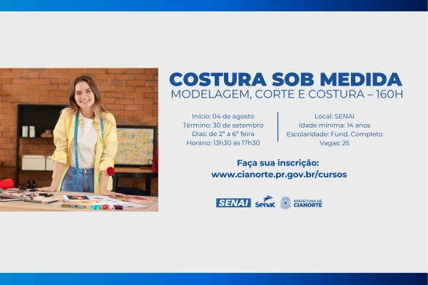 Inscrições abertas para o curso gratuito de Costura Sob Medida