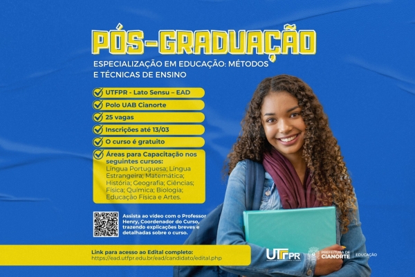 Inscrições para a “Especialização em Educação: Métodos e Técnicas de Ensino” terminam nesta quinta-feira