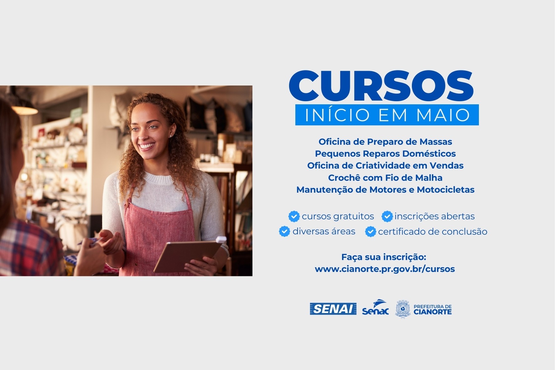 Maio chega com uma excelente notícia para os moradores de Cianorte que buscam qualificação profissional e novas habilidades. A Prefeitura Municipal, por meio da Estação do Ofício e do Projeto Profissionaliza Mulher, em parceria com o SENAC e o SENAI, está oferecendo, neste mês, nove cursos gratuitos em diversas áreas, sendo que cinco deles ainda têm as inscrições abertas à população. As oportunidades abrangem desde a gastronomia até a mecânica de motocicletas, visando atender a diferentes interesses e necessidades do mercado de trabalho local.