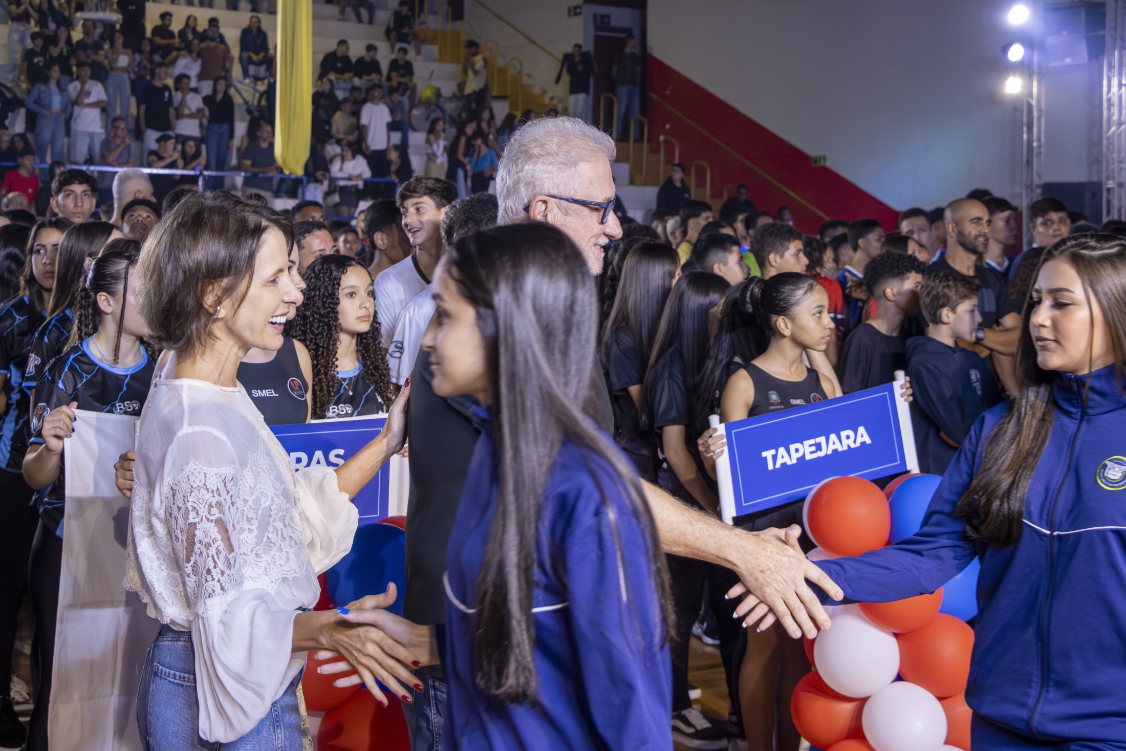 PRESENÇAS: Também participaram da solenidade os prefeitos Tatinha (Jussara), Adriana Polizer (Japurá), Padre Guerino (Tuneiras do Oeste) e Vitor Hugo Lazinho (São Manoel do Paraná); o chefe de Gabinete de Tapejara, Gledson Faxina; o presidente da Câmara de Cianorte, Victor Hugo Davanço e os vereadores Beto Nabhan, Marisa Franco e Robson Fagundes; os secretários municipais Lucas Meira (Esporte e Lazer), Jakeline Marcon (Educação) e Fernanda Braghini (Comunicação); e a coordenadora regional dos JEPS, professora Rachel Lopes Pedro Bomfim.