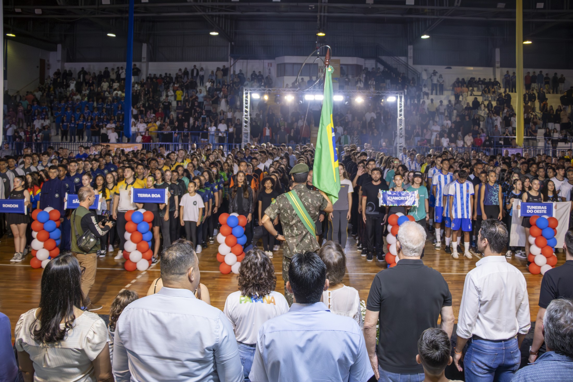 O evento de abertura foi abrilhantado por uma apresentação especial do grupo “Cirqueridum – Circo e Artes”, de Maringá, que encantou o público com números circenses e performances artísticas. Durante a solenidade, o prefeito de Cianorte, Marco Franzato, destacou a importância do evento para a cidade e para o esporte escolar. “Receber a etapa dos Jogos Escolares é mais do que um evento esportivo: é celebrar a juventude, a união e os sonhos de centenas de estudantes/atletas que aqui estão representando, com orgulho, suas escolas, cidades e comunidades”, afirmou Franzato, acompanhado da 1ª Dama, Valdete.
