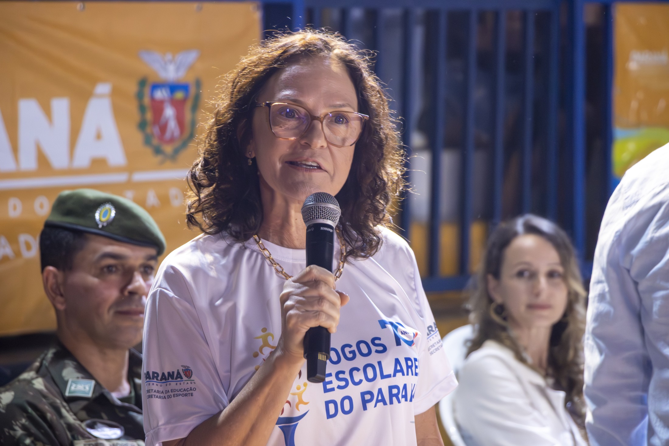 “Além de promover a competição saudável entre os estudantes, os JEPS também proporcionam momentos de integração, amizade e aprendizado”, completou a chefe do Núcleo Regional de Educação, Sra. Silmara Affonço. Durante a solenidade, a aluna-atleta Eloah Fernanda Souza Ardenghi proferiu o juramento; e a aluna-atleta Amanda Miranda conduziu o fogo simbólico até a Pira Olímpica.