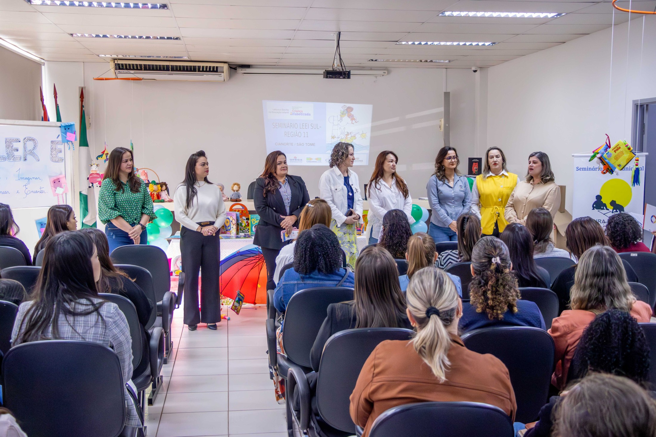 O seminário prestigiou as equipes diretivas e os professores da Educação Infantil 4 e 5 das escolas municipais da Capital do Vestuário e as professoras cursistas do LEEI. O evento contou o relato de experiências dos projetos aplicados em sala de aula. “Após meses de estudos e reflexões sobre a importância desta etapa do desenvolvimento infantil, as educadoras compartilharam os resultados de um trabalho dedicado e responsável. A iniciativa demonstrou o engajamento dos profissionais na busca por aprimorar as práticas pedagógicas e garantir um futuro mais letrado para as crianças”, explicou a assessora da Educação Infantil e formadora municipal LEEI, Juliana Cecília Ouverney Silva.