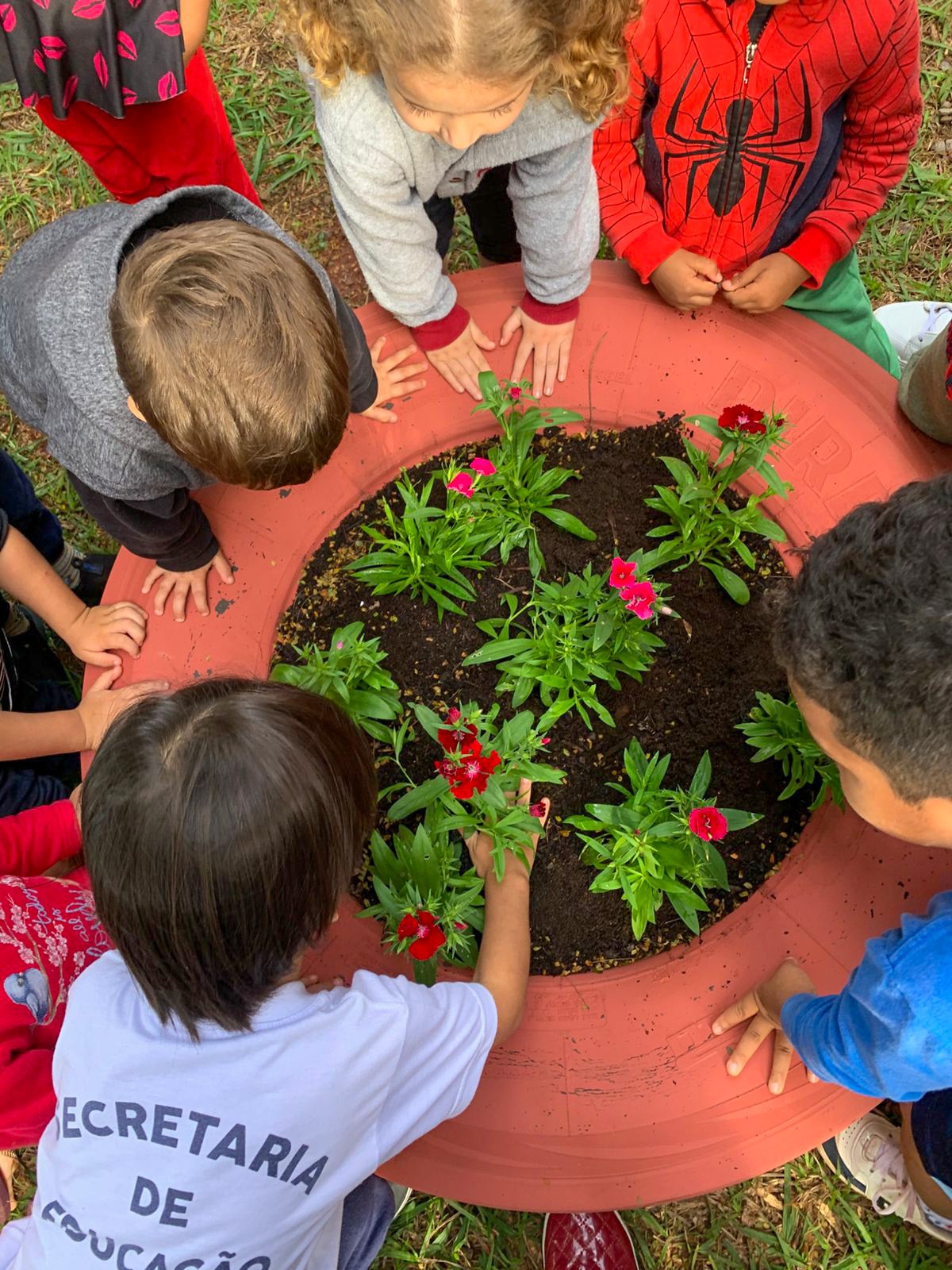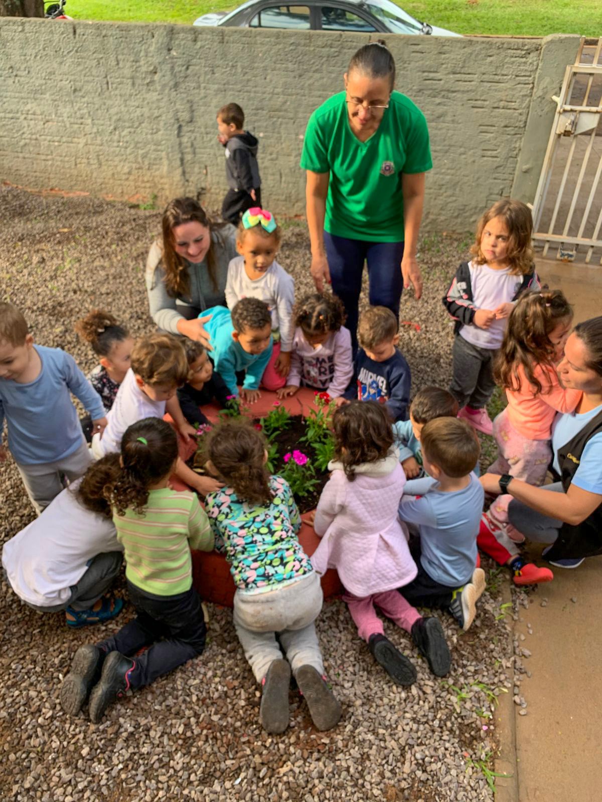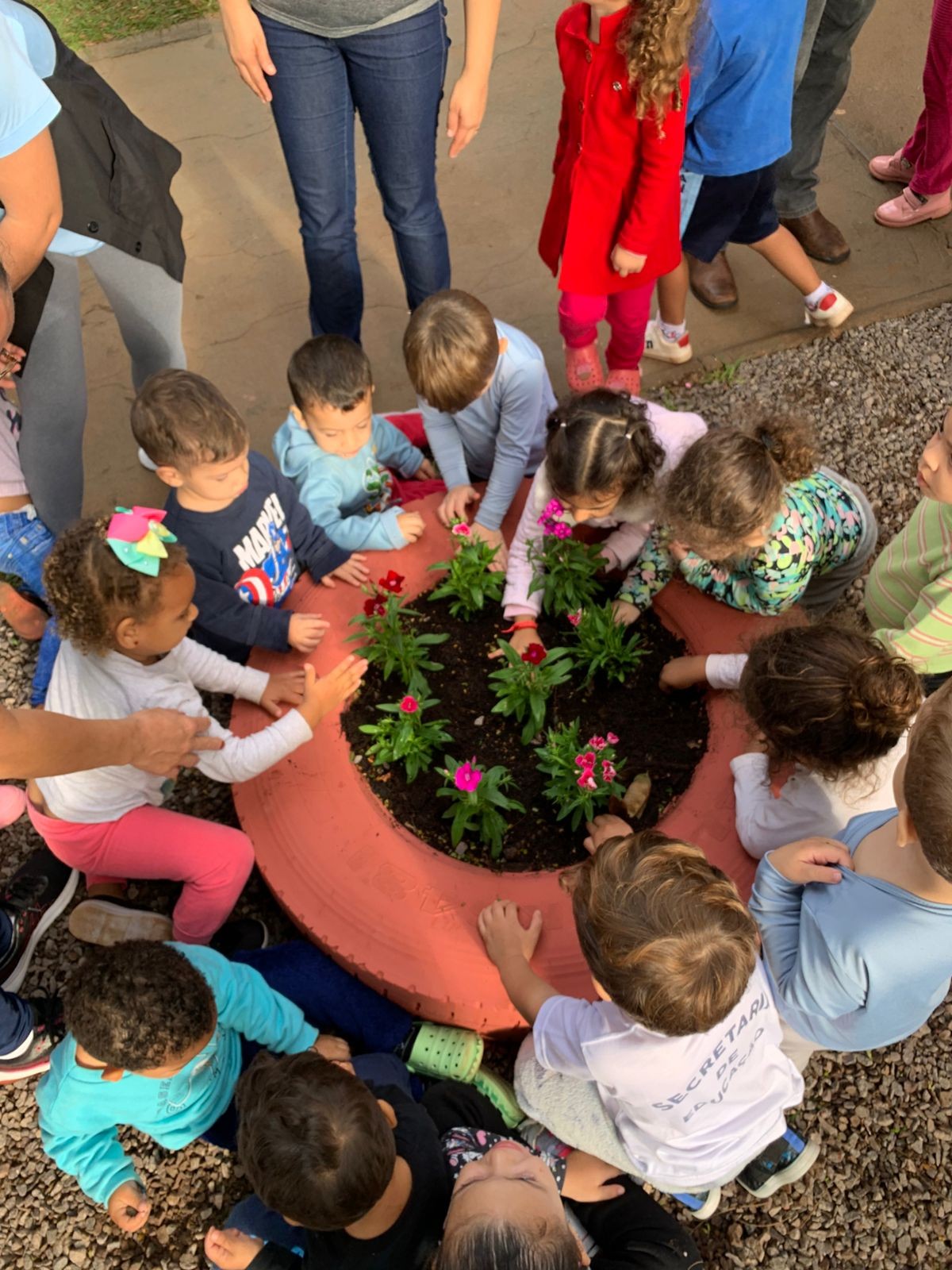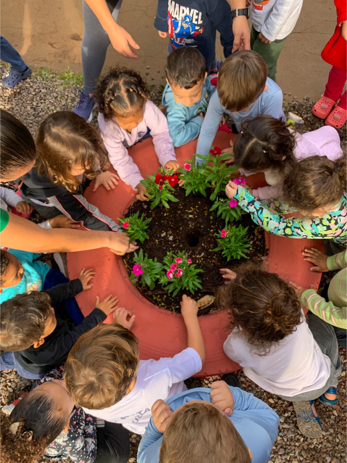 Durante a semana, as seis turmas atendidas pela instituição participaram do plantio de mudas de flores em pneus reciclados. A proposta teve como objetivo incentivar, desde a primeira infância, o cuidado com a natureza e a importância da reciclagem, promovendo atitudes sustentáveis no dia a dia das crianças.