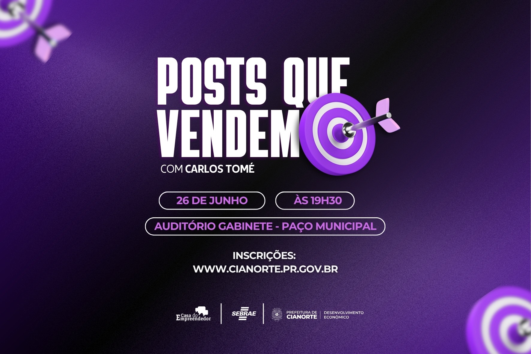 Em um cenário cada vez mais digital, saber usar as redes sociais para gerar vendas se tornou essencial para qualquer negócio. Pensando nisso, empreendedores de Cianorte terão uma oportunidade imperdível para aprimorar suas estratégias online com a oficina “Posts que Vendem”, ministrada por Carlos Tomé.