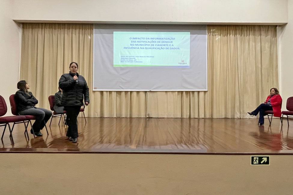Na Mesa III “Olhar Vigilante voltado à Qualificação do Cuidado”, a supervisora da Vigilância Epidemiológica, Tania Mara de Almeida, falou sobre “O Impacto da Informatização das Notificações de Dengue no Município de Cianorte e a Influência na Qualificação de Dados”, um trabalho desenvolvido pela equipe da Unidade Básica de Saúde (UBS) do Cianortinho, coordenado pela enfermeira Lóice Alana Da Silva Brizzi.