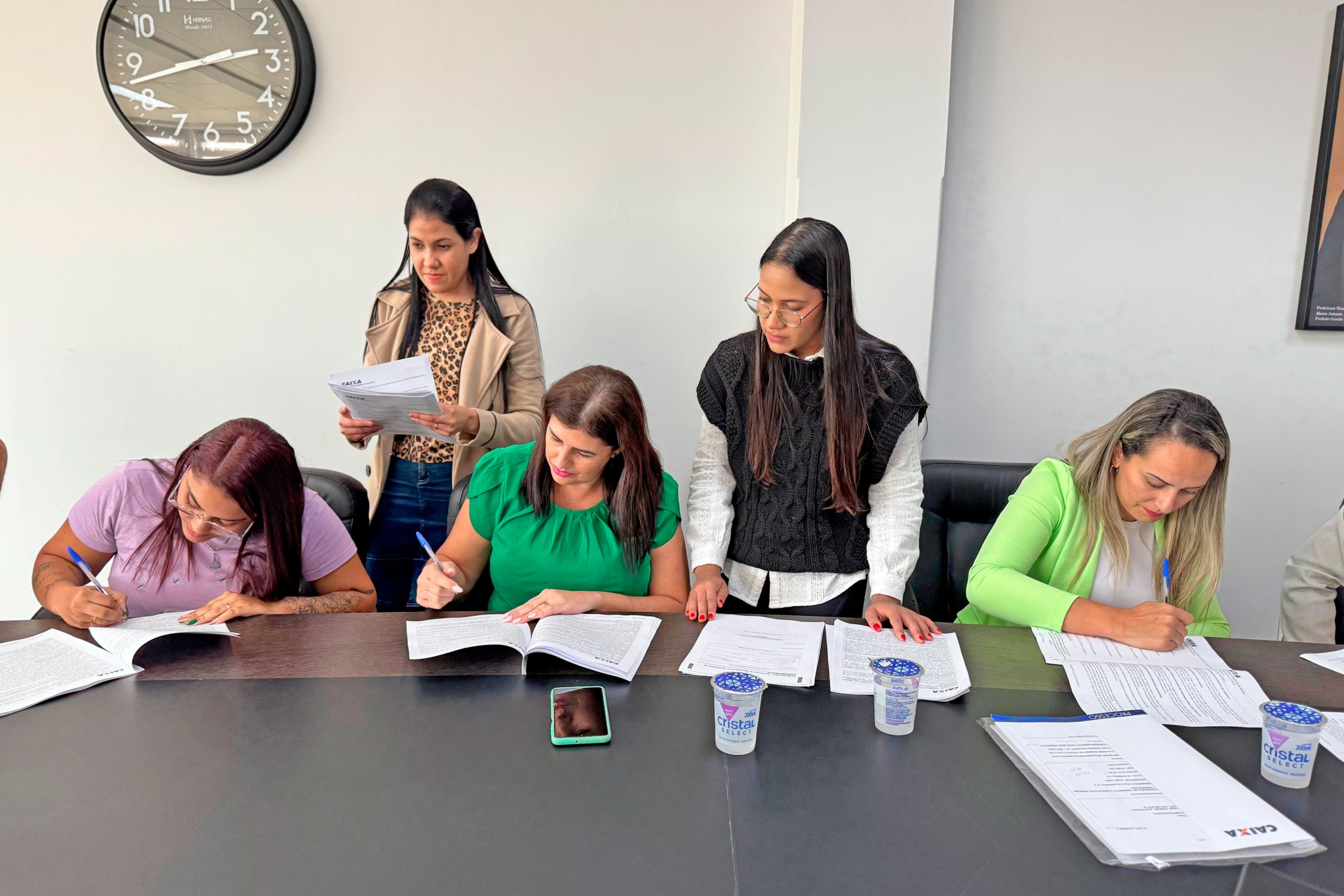 Os titulares das famílias beneficiadas pelo programa habitacional Casa Fácil, que construirá 22 residências no Residencial José Hohl, estiveram no gabinete do prefeito, Marco Franzato, na última terça-feira (17), para a assinatura do contrato de financiamento junto à Caixa Econômica Federal. O ato marcou o início da etapa de implementação do empreendimento, desenvolvido pela Construtora Japurá e localizado na região dos Seis Conjuntos, entre as ruas Coleirinha, João Francisco da Silva e Avelina Zapellini Hohl.