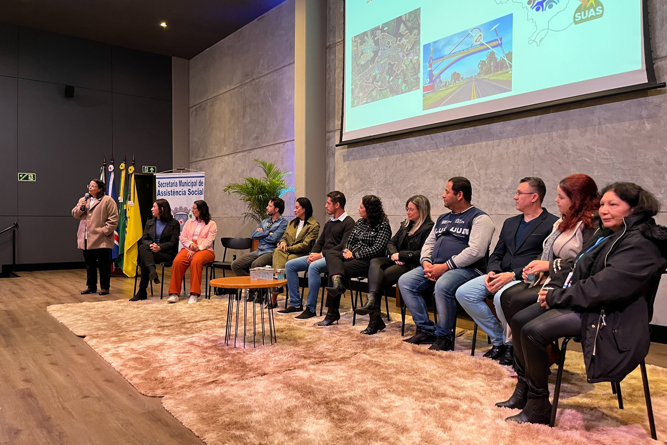 Também marcaram presença no evento o diretor da UMFG, professor Mário dos Anjos Neto; a assistente social do MP, Adriéli Volpato Craveiro; a representante da Instância Regional da SEDEF, Rosa Maria; representando os trabalhadores do SUAS, a psicóloga Jordana Vieira; as Organizações da Sociedade Civil, Alessandra Castardo (Tia Sé) e Oriel Rodrigues (Casa Betel); e a usuária do Serviço, Jaqueline Targino Costa. O presidente do Conselho Municipal de Assistência Social, Maurício Longuini Pereira, abriu os trabalhos com maestria. Para facilitar o acesso dos participantes, foi oferecido transporte gratuito.