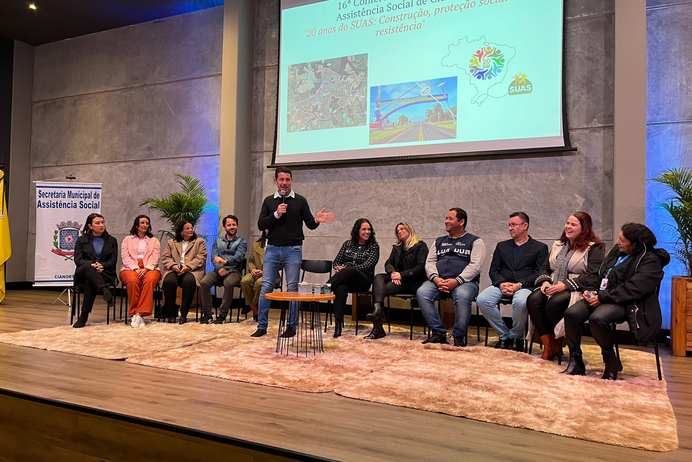 “É inspirador ver como o SUAS evoluiu nos últimos 20 anos. Desde sua concepção, um dos pilares mais fortes e transformadores tem sido, sem dúvida, a participação ativa de todos os envolvidos. Antigamente, as decisões muitas vezes vinham de cima para baixo. Hoje, temos um sistema que nos permite construir as políticas de assistência social de forma coletiva e democrática, com a voz dos usuários, trabalhadores, entidades e do próprio conselho ecoando em cada deliberação”, ressaltou a secretária municipal de Assistência Social, Andressa Belo Safira, também representando o prefeito Marco Franzato.
