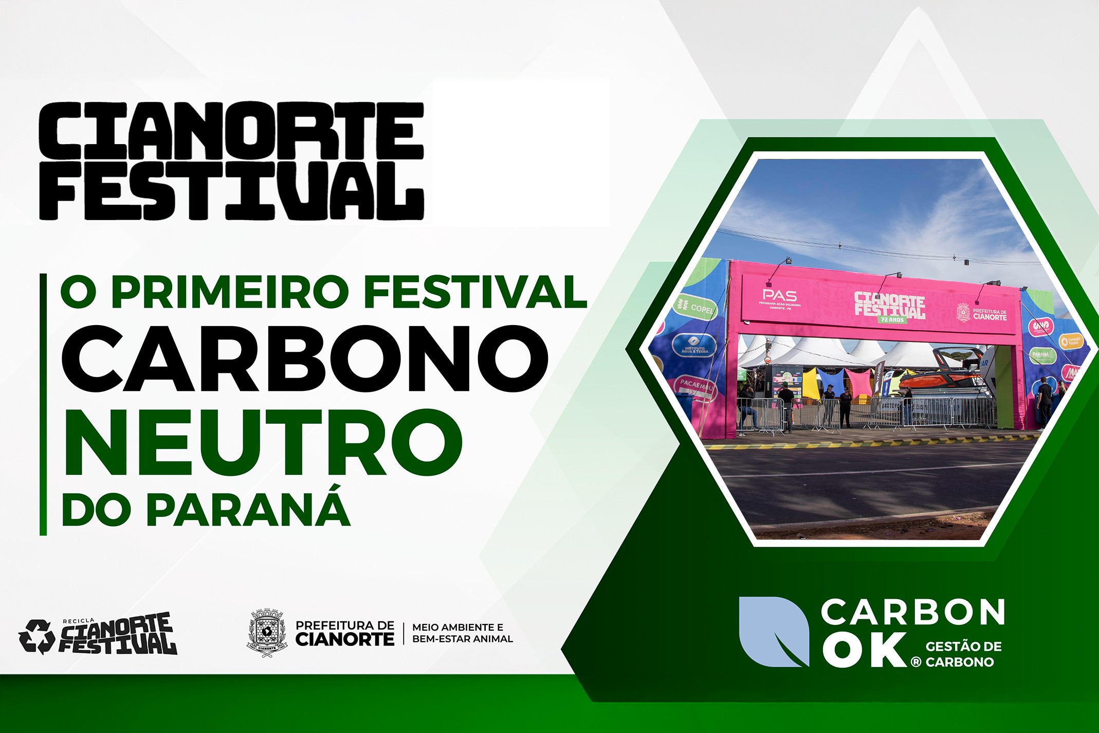 A edição deste ano do Cianorte Festival está dando um passo importante rumo à sustentabilidade. Pela primeira vez, o evento foi planejado para se tornar carbono neutro, por meio da neutralização das emissões de gases de efeito estufa (GEE) geradas durante sua realização. A ação é uma iniciativa da Secretaria Municipal de Meio Ambiente, que busca integrar a responsabilidade climática à festa de comemoração do aniversário do município, tornando o Cianorte Festival o 1º festival carbono neutro do Paraná.