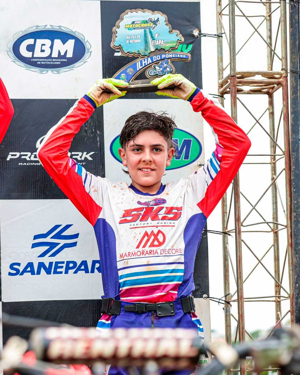 A equipe da Associação Motocross Clube Cianorte (AMCC) teve mais motivos para comemorar. Competindo na categoria 65cc, João Rafael também garantiu um expressivo 5º lugar. O piloto destacou a dificuldade do circuito e a importância da estratégia: “Venho vencendo a mim mesmo a cada dia. Era uma pista muito técnica, com poucos pontos de ultrapassagem, mas mantive a constância e fiz o movimento no momento seguro para garantir a colocação”, relatou.