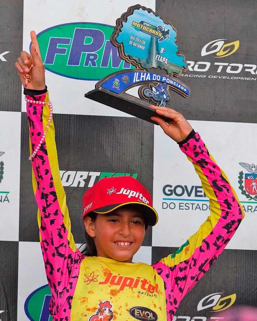 O ronco dos motores e a adrenalina tomaram conta da cidade de Carlópolis, no último final de semana (25 e 26), durante a 8ª etapa do Campeonato Paranaense de Motocross. Representando Cianorte em disputas marcadas por emoção e superação, a piloto Ana Heloísa Tropaldi Hildebrand, de apenas 10 anos, conquistou o lugar mais alto do pódio na categoria 50cc; e o piloto João Rafael Frez Carvalho, de 11 anos, o quinto lugar.