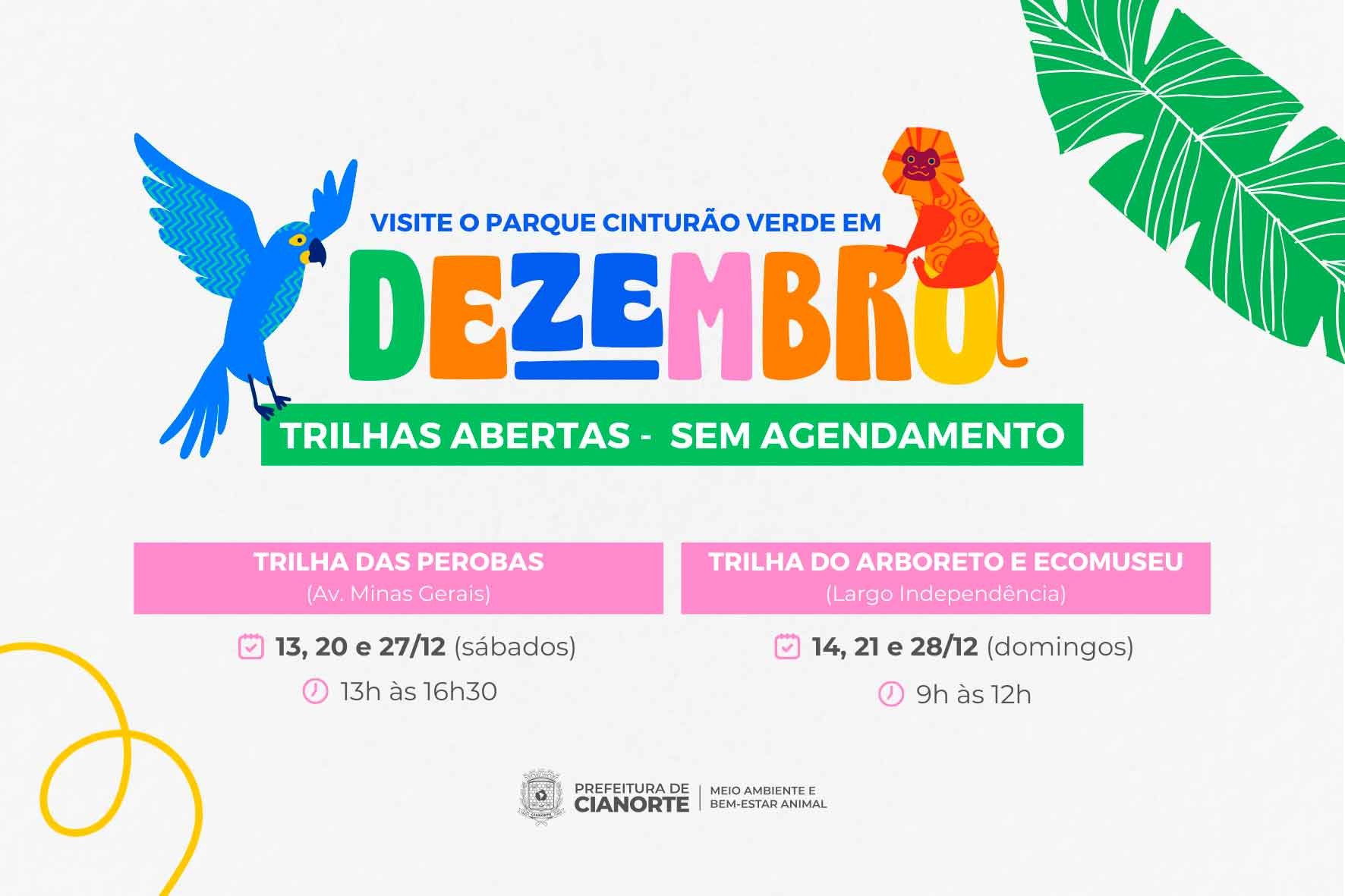 Em dezembro, as famílias e amigos que buscam contato com a natureza e momentos de lazer ao ar livre terão uma opção de entretenimento aos finais de semana, com a abertura das trilhas do Parque Municipal Cinturão Verde ao público, sem necessidade de agendamento. Os visitantes poderão explorar a rica biodiversidade local em dois percursos distintos: a Trilha das Perobas e a Trilha do Arboreto. Ambas oferecem uma experiência imersiva na mata nativa, proporcionando um respiro da rotina e uma oportunidade de aprendizado sobre o meio ambiente.