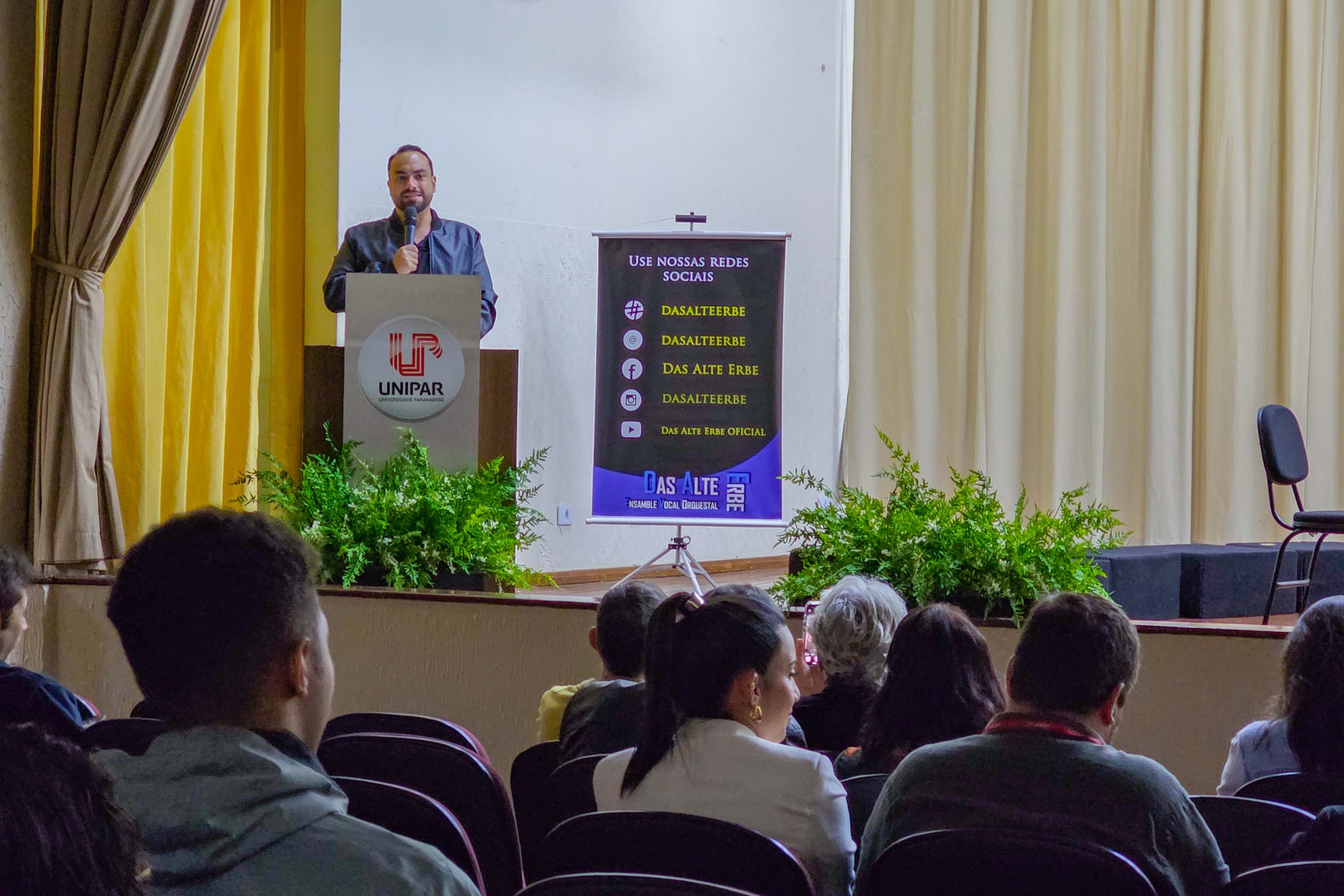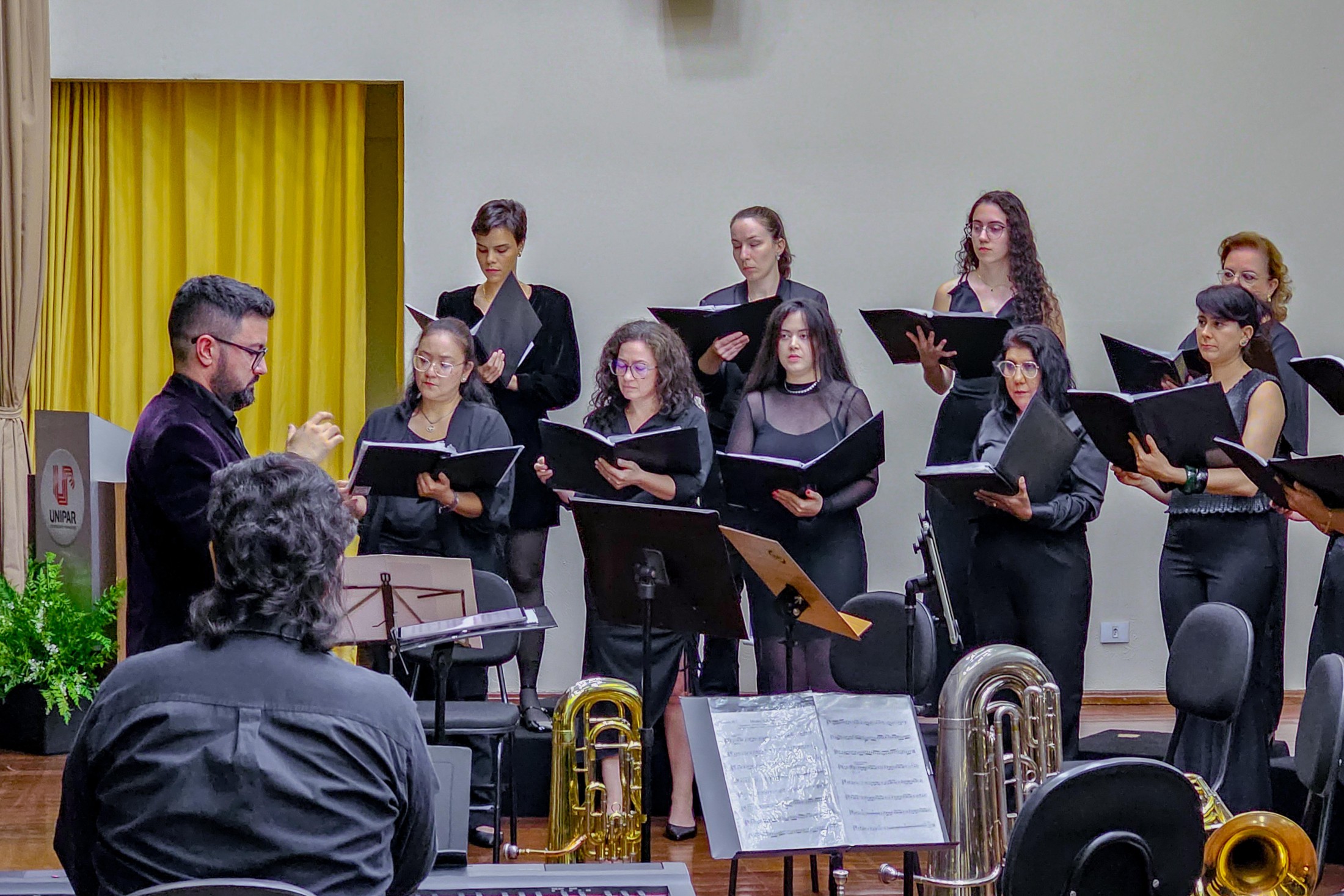 Na última sexta-feira (12), o espírito natalino tomou conta do Teatro Cândido Garcia, no campus da Unipar em Cianorte. O local foi o cenário para o Coral Das Alte Erbe, que realizou o espetáculo “Especial de Natal”, uma iniciativa do grupo e da Universidade, com o apoio da Prefeitura. A apresentação, com entrada gratuita, foi um dos pontos altos da programação “Encantos de Natal”.