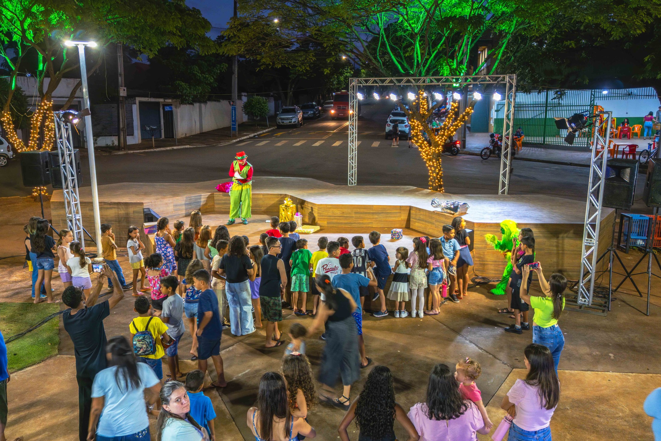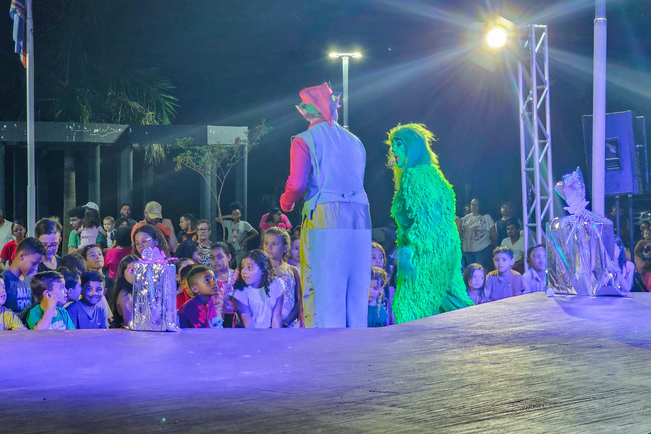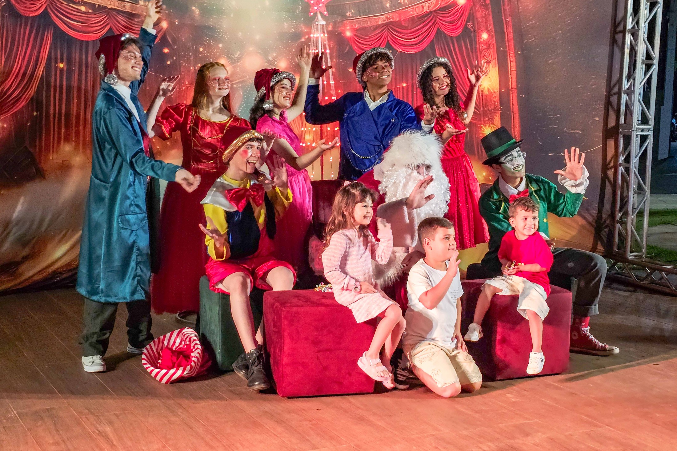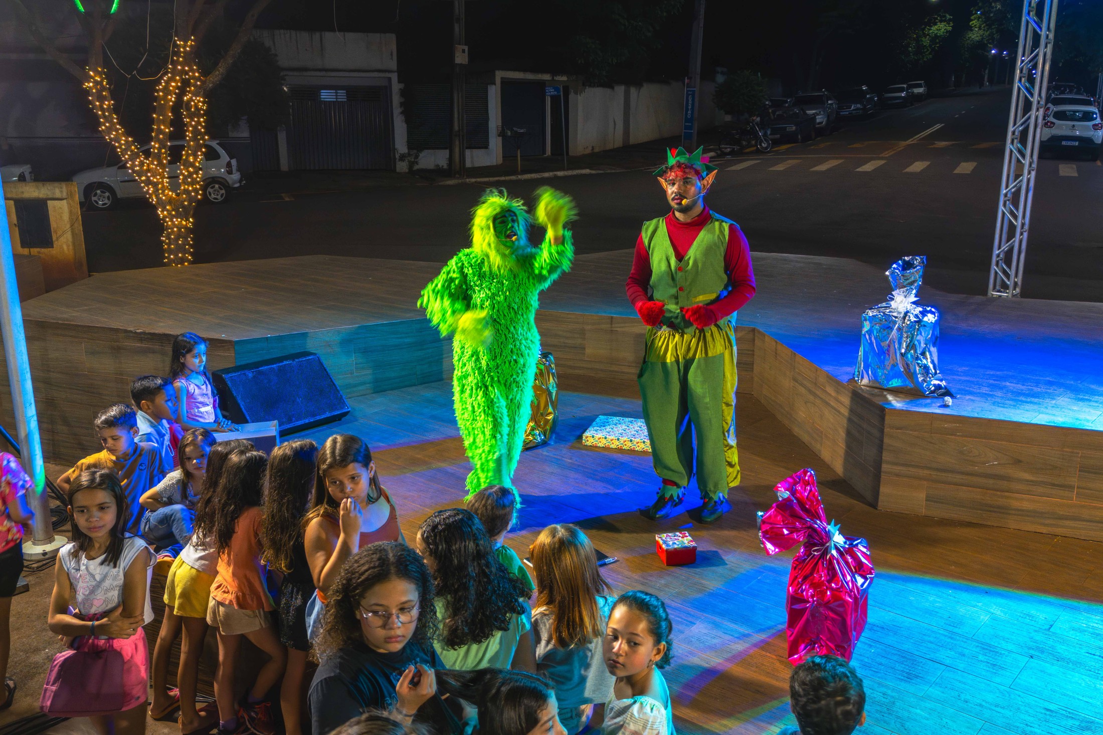 Já o distrito de São Lourenço recebeu a caravana natalina na terça-feira (16). A Praça 7 de Setembro tornou-se o ponto de encontro para os moradores assistirem à releitura do clássico “Pinóquio”, trazida pela CIA de Teatro Eskéte. Além das atrações profissionais, o evento valorizou os talentos da casa. Alunos dos Centros Municipais de Educação Infantil (CMEIs) Criança Esperança e Monteiro Lobato subiram ao palco e emocionaram o público com apresentações preparadas especialmente para a ocasião.