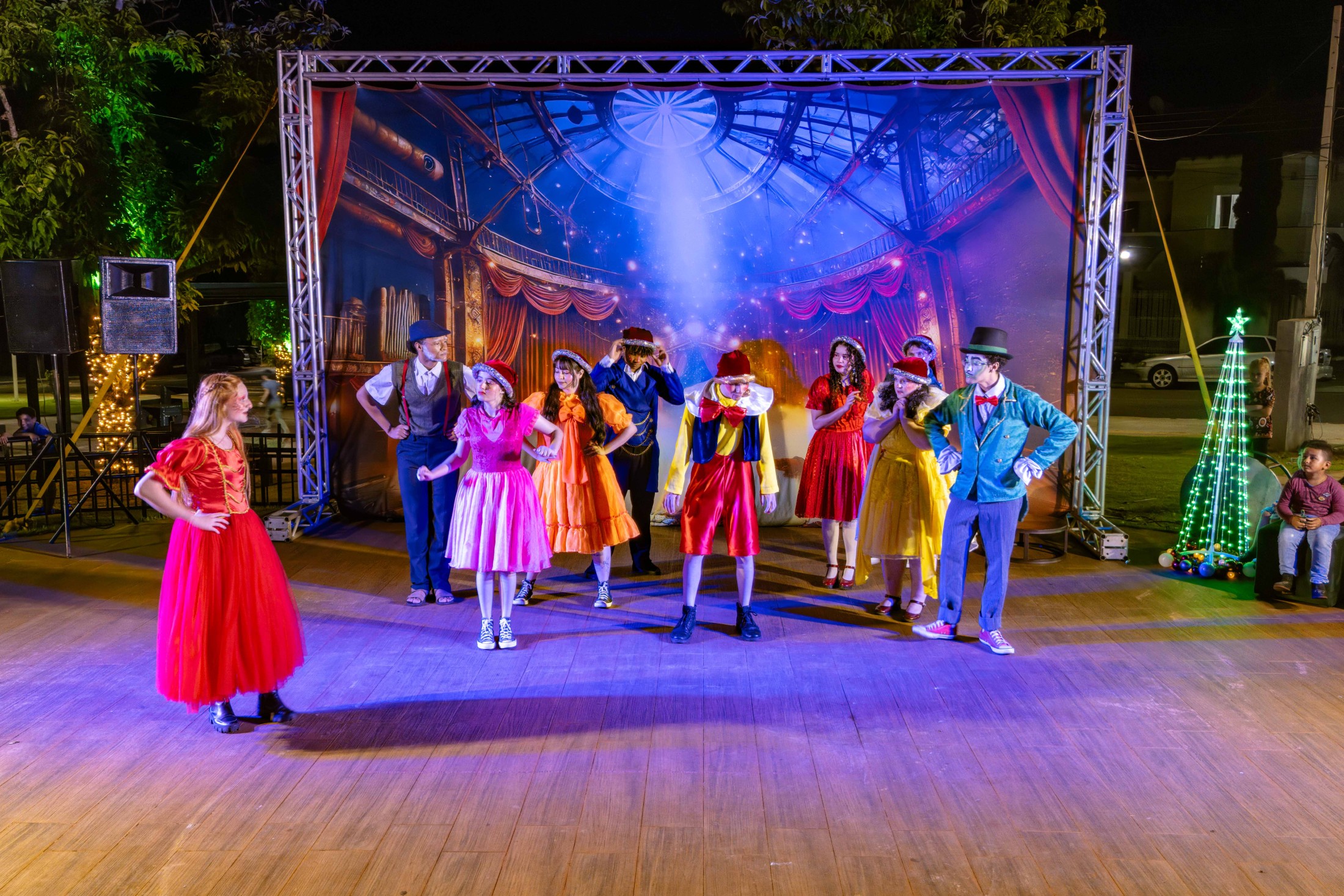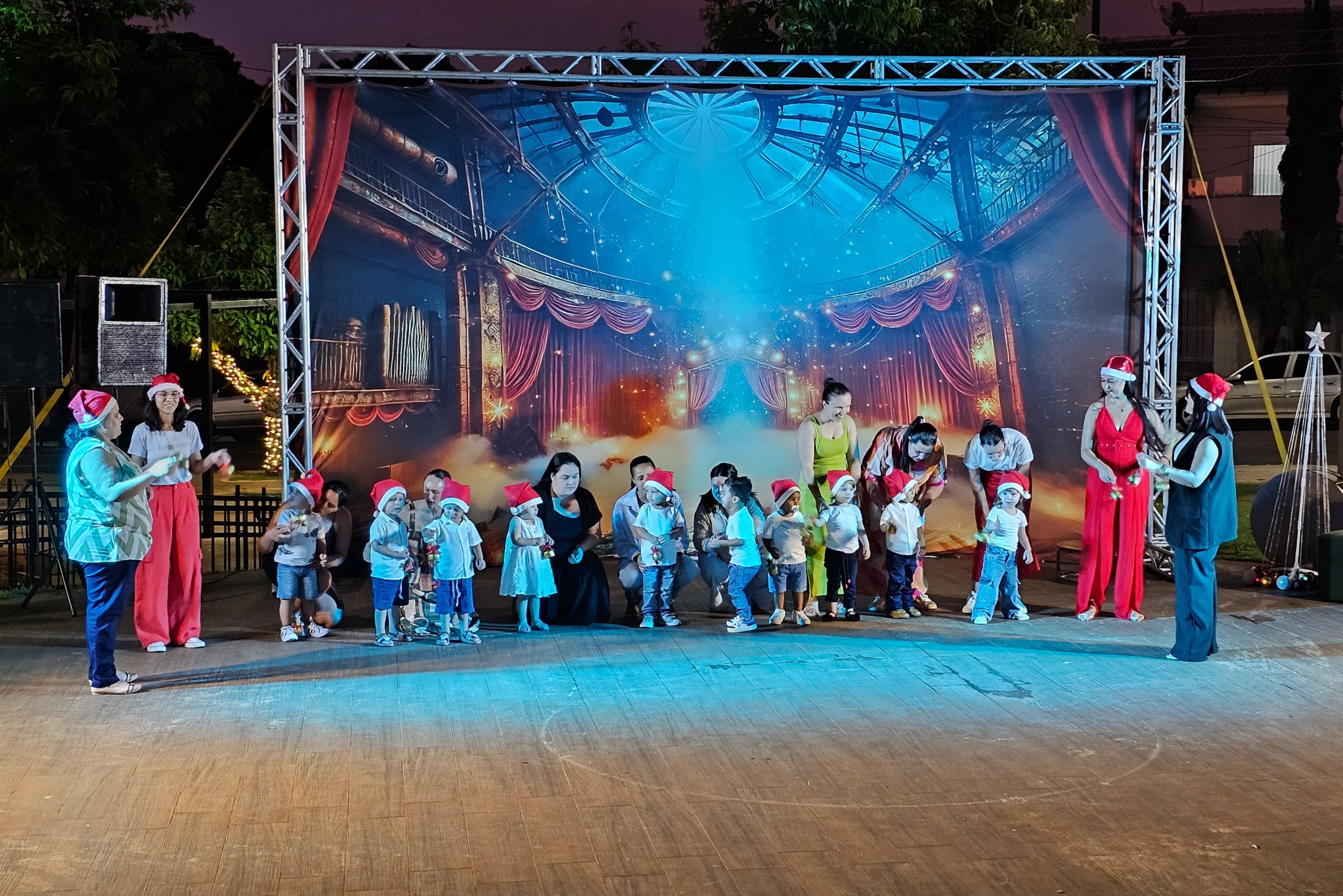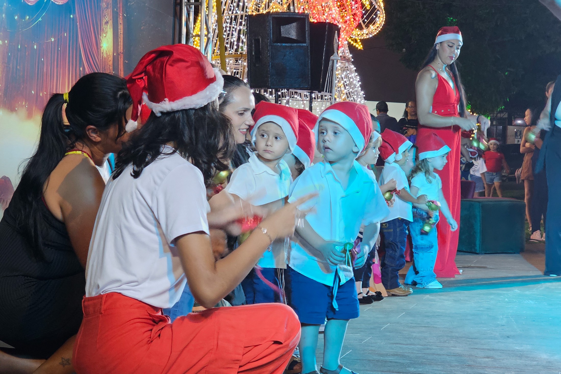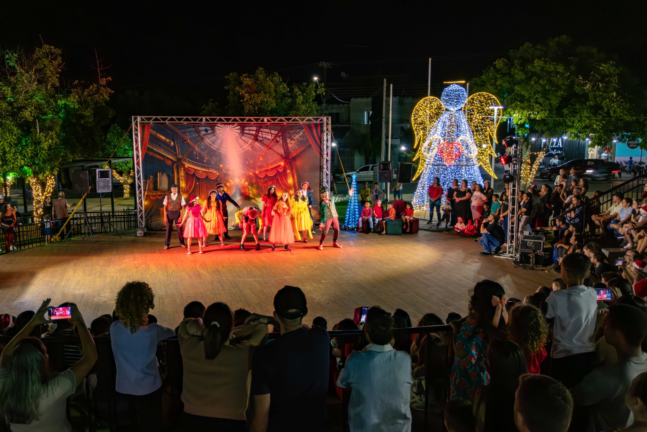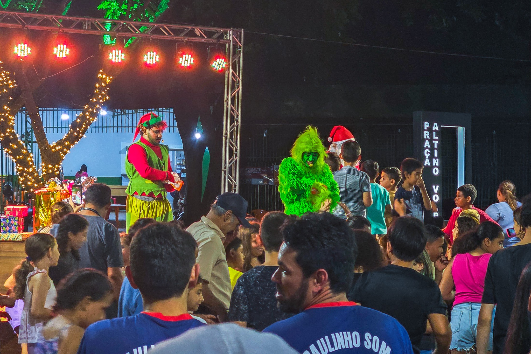Já o distrito de São Lourenço recebeu a caravana natalina na terça-feira (16). A Praça 7 de Setembro tornou-se o ponto de encontro para os moradores assistirem à releitura do clássico “Pinóquio”, trazida pela CIA de Teatro Eskéte. Além das atrações profissionais, o evento valorizou os talentos da casa. Alunos dos Centros Municipais de Educação Infantil (CMEIs) Criança Esperança e Monteiro Lobato subiram ao palco e emocionaram o público com apresentações preparadas especialmente para a ocasião.