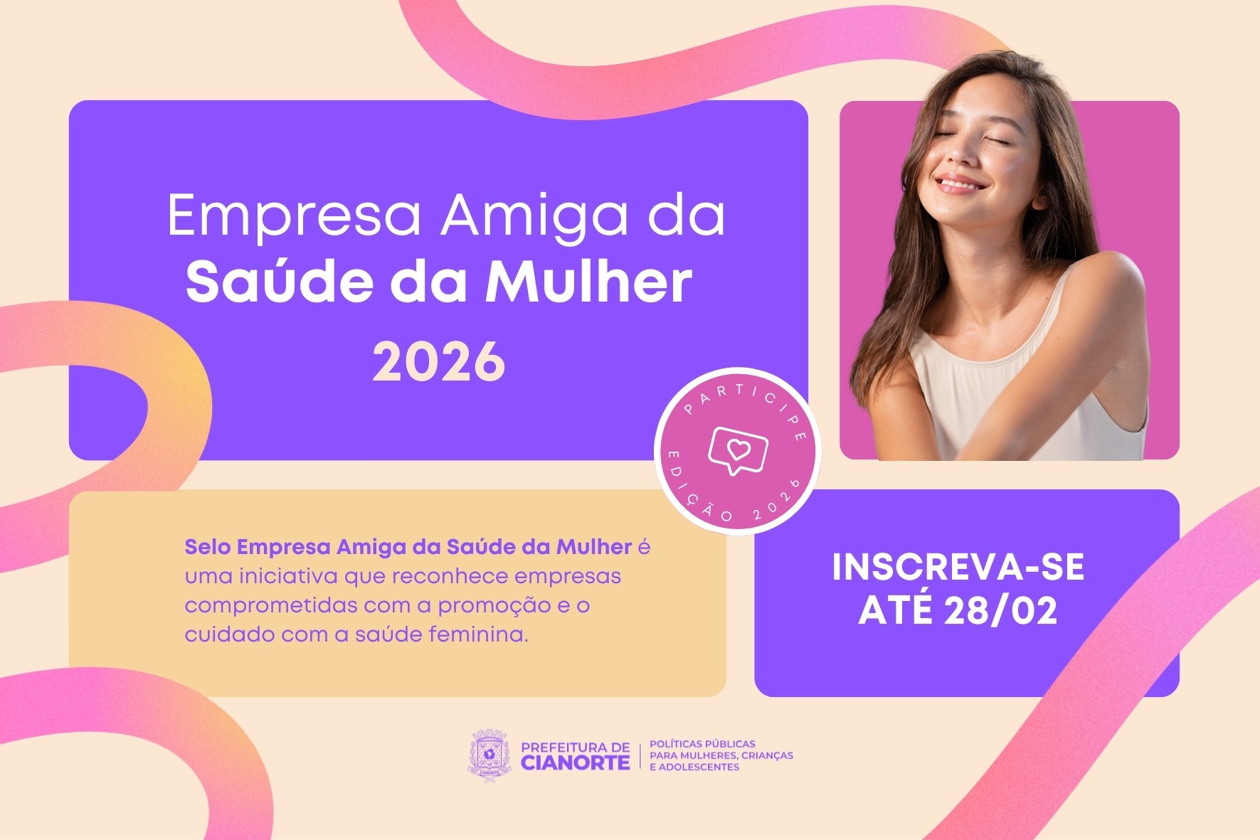 A Prefeitura de Cianorte, por meio da Secretaria de Políticas Públicas para Mulheres, Crianças e Adolescentes, reforça o compromisso com a promoção da saúde feminina ao instituir o Selo “Empresa Amiga da Saúde da Mulher”, criado pela Lei nº 5.753, de 5 de junho de 2025, e regulamentado pelo Decreto nº 226, de 25 de setembro de 2025.