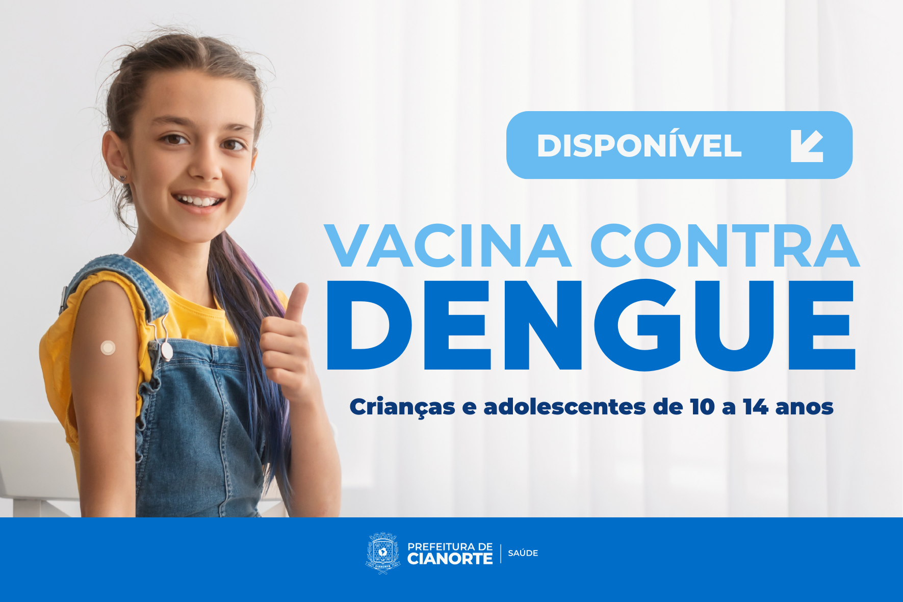 Com o objetivo de conter o avanço da arbovirose e proteger a população jovem, a Prefeitura de Cianorte, por meio da Secretaria Municipal de Saúde, inicia nesta quinta-feira (05) a vacinação contra a dengue. O município recebeu, nesta primeira etapa, um lote com 1.542 doses, que já estão disponíveis em todas as Unidades Básicas de Saúde (UBS) da sede e dos distritos, além da Policlínica Alessandra Márcia Caetano Cândido Batista.