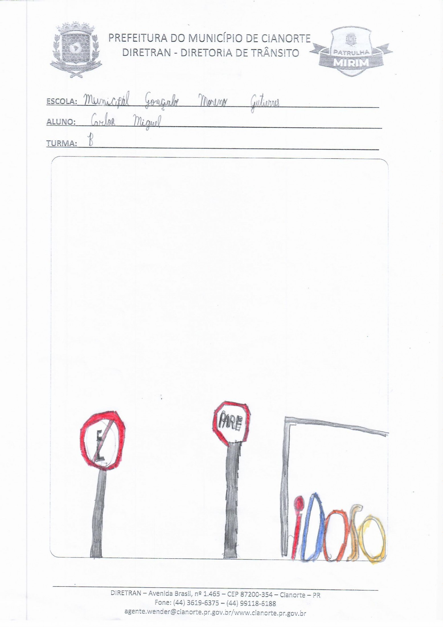 Na última terça-feira (05), a equipe esteve na Escola Municipal Gonçalo Moreno Gutierres. No 3º ano, os alunos realizaram uma prática em que, acompanhados dos agentes, conheceram a sinalização de trânsito próxima à escola. Já no 4º ano, os estudantes entregaram as atividades da última visita e debateram questões. Ao final, todos tiveram a oportunidade de ilustrar o tema, marcando a conclusão do primeiro semestre.