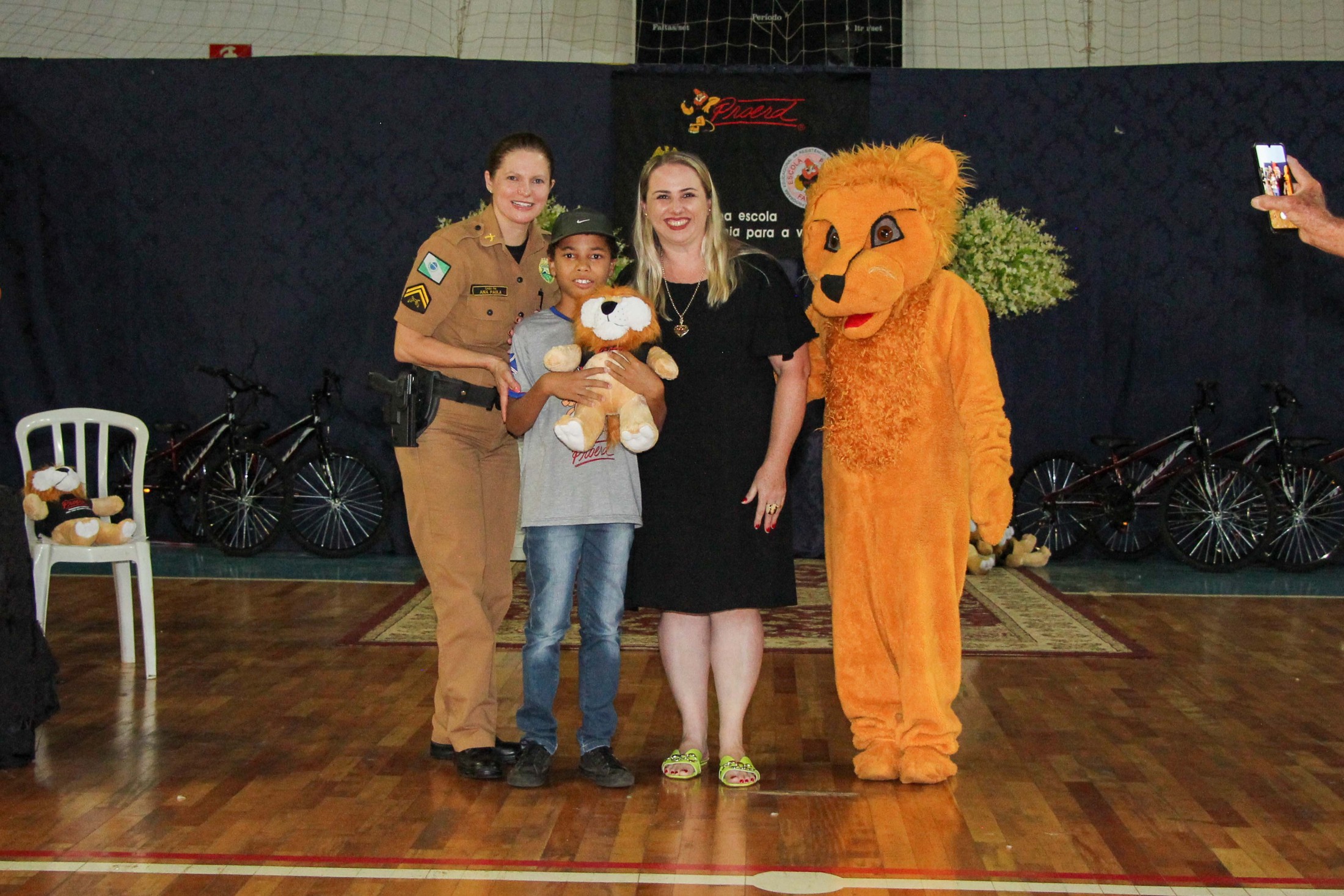 Na oportunidade, os autores das cinco melhores redações sobre o combate às drogas receberam uma bicicleta cada, patrocinadas pelas empresas Serallê Calçados, Curtume Cialeather Couros, B&F Agro e Grupo Morena Rosa. Também foram sorteadas 30 pelúcias do leão Dare, mascote do programa, adquiridas pelas APMF’s das escolas.