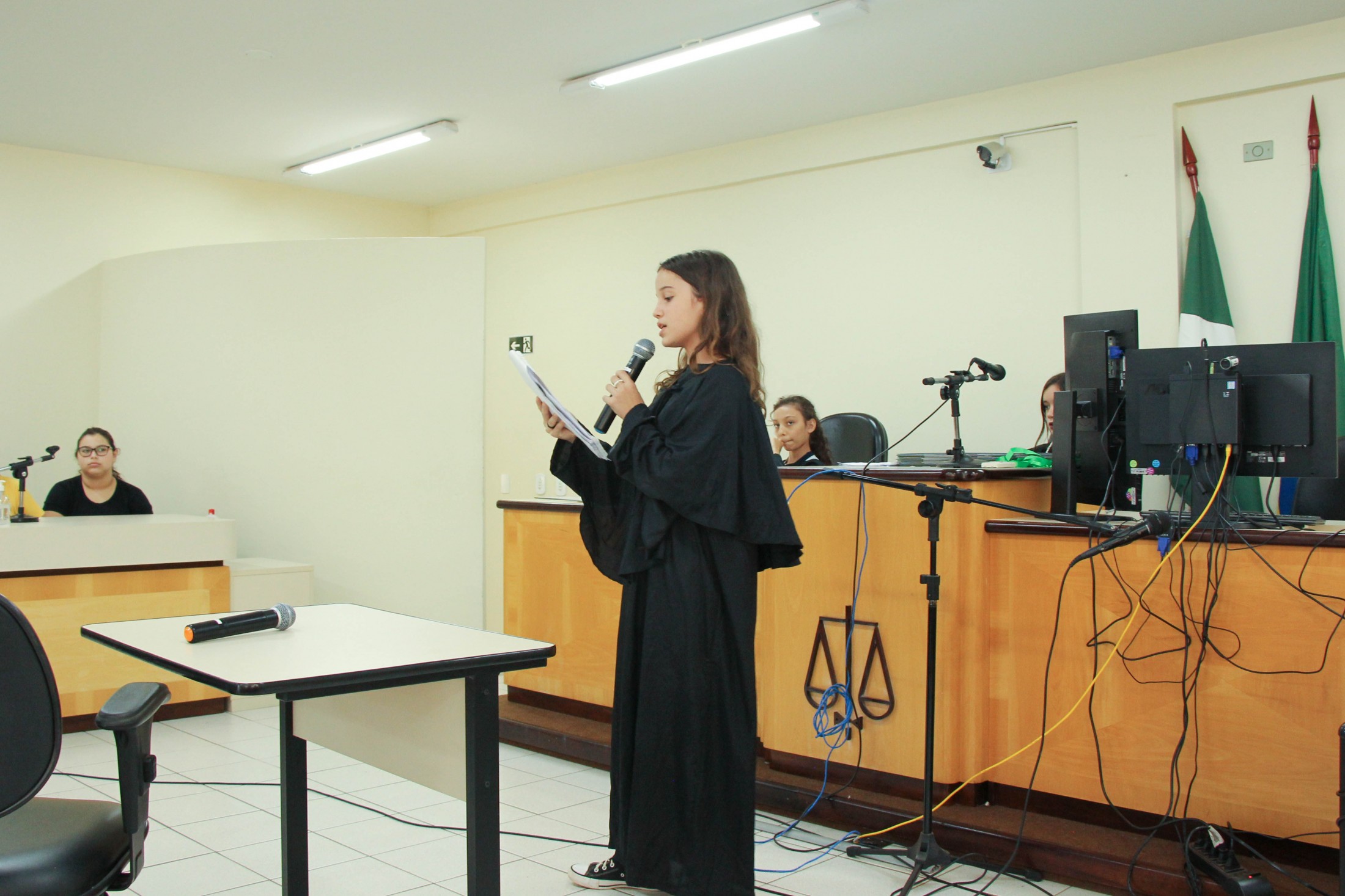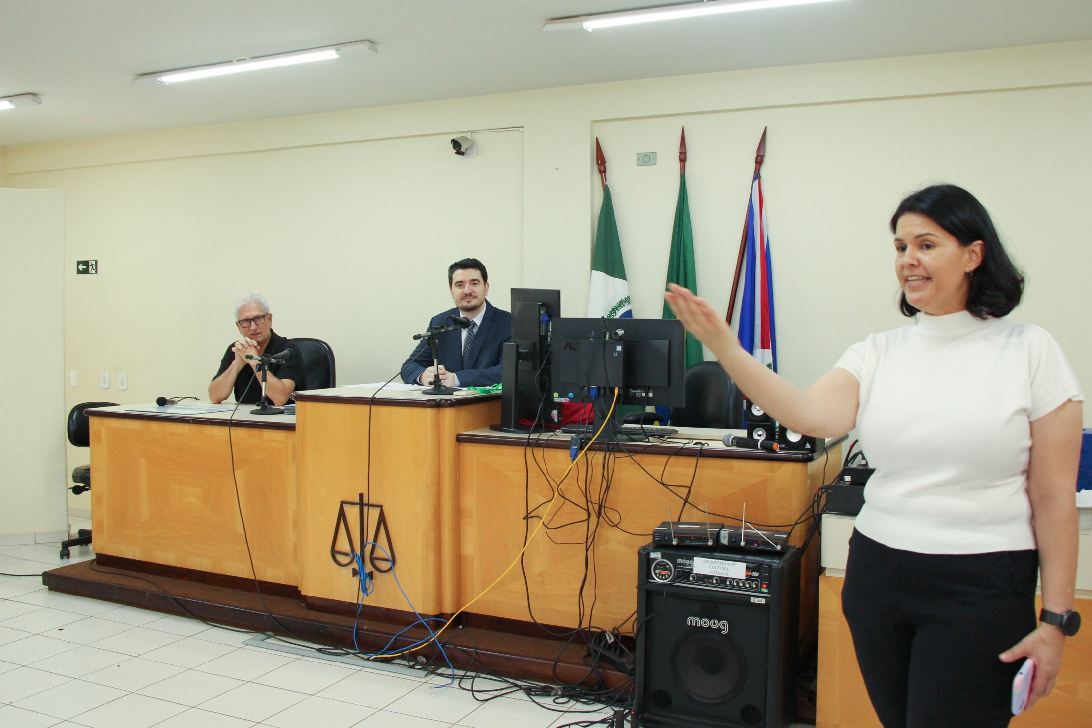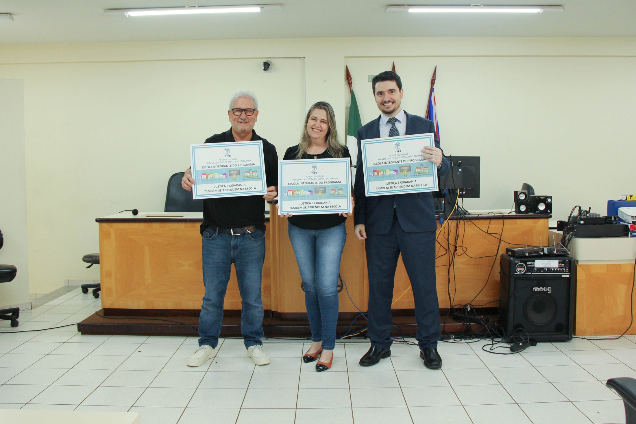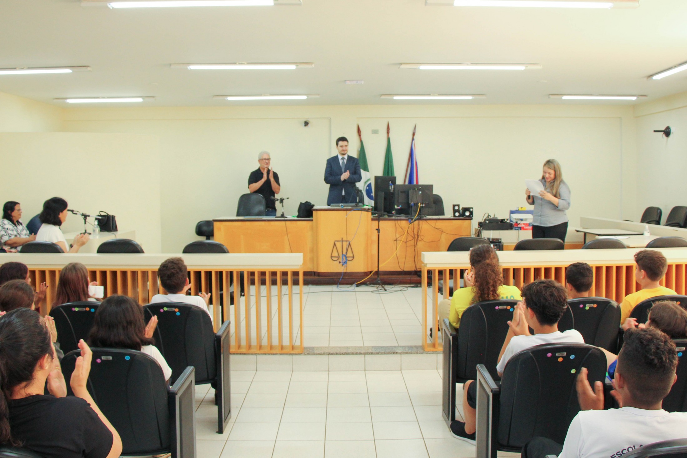 “A intenção do ‘Cidadania e Justiça também se aprendem na Escola’ é contribuir para a formação dos estudantes sobre deveres dos cidadãos; conscientização sobre os direitos e as formas de exercê-los; além de estabelecer relações entre o conteúdo curricular e as atividades dos Poderes no contexto da democracia, propiciando a almejada integração entre o Poder Judiciário e a sociedade”, destacou o magistrado, acompanhado pelos promotores de Justiça, Dra. Elaine Lopo, Dr. Bruno Rodrigues da Silva e Dr. Marcos Antônio Lopes Stann.