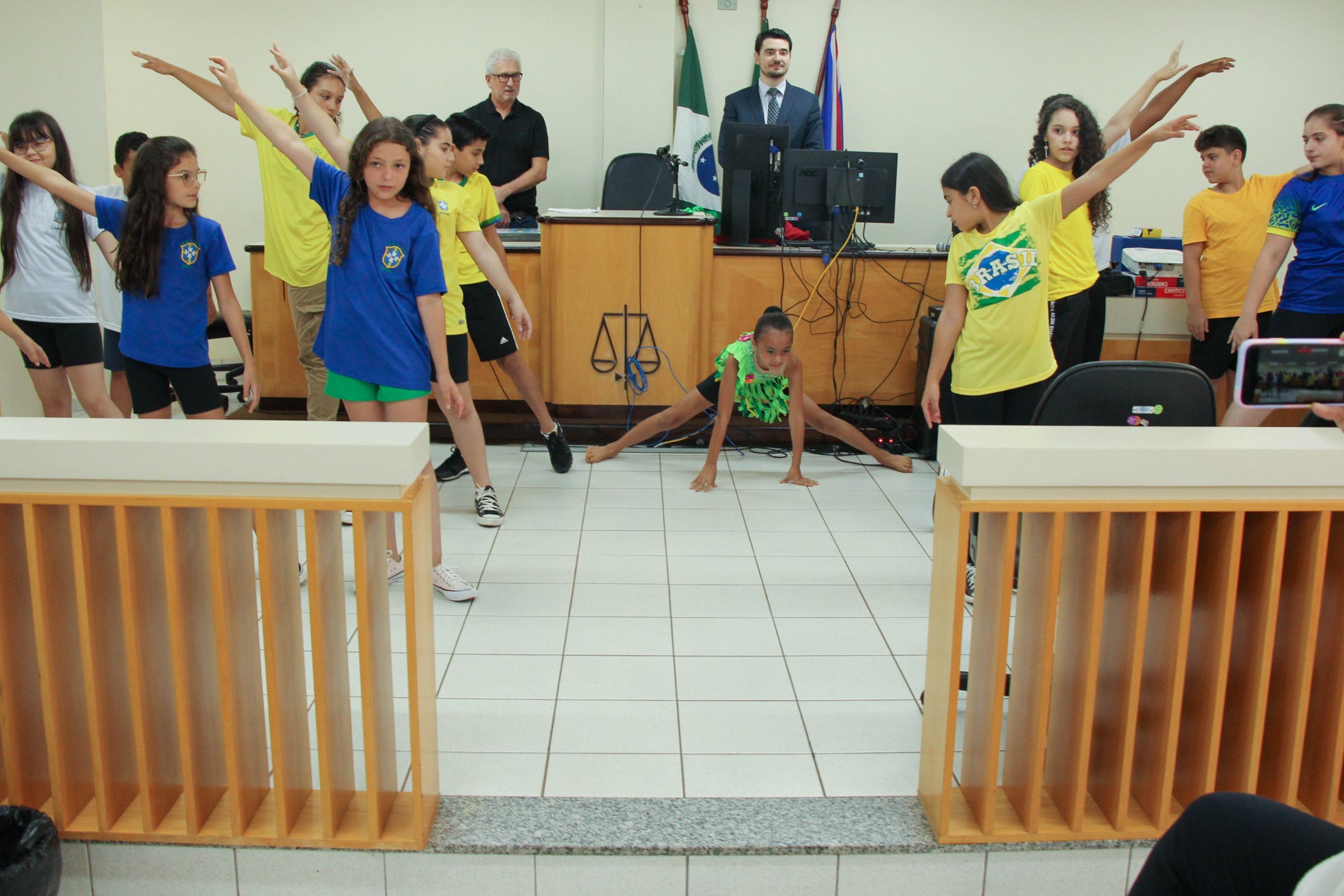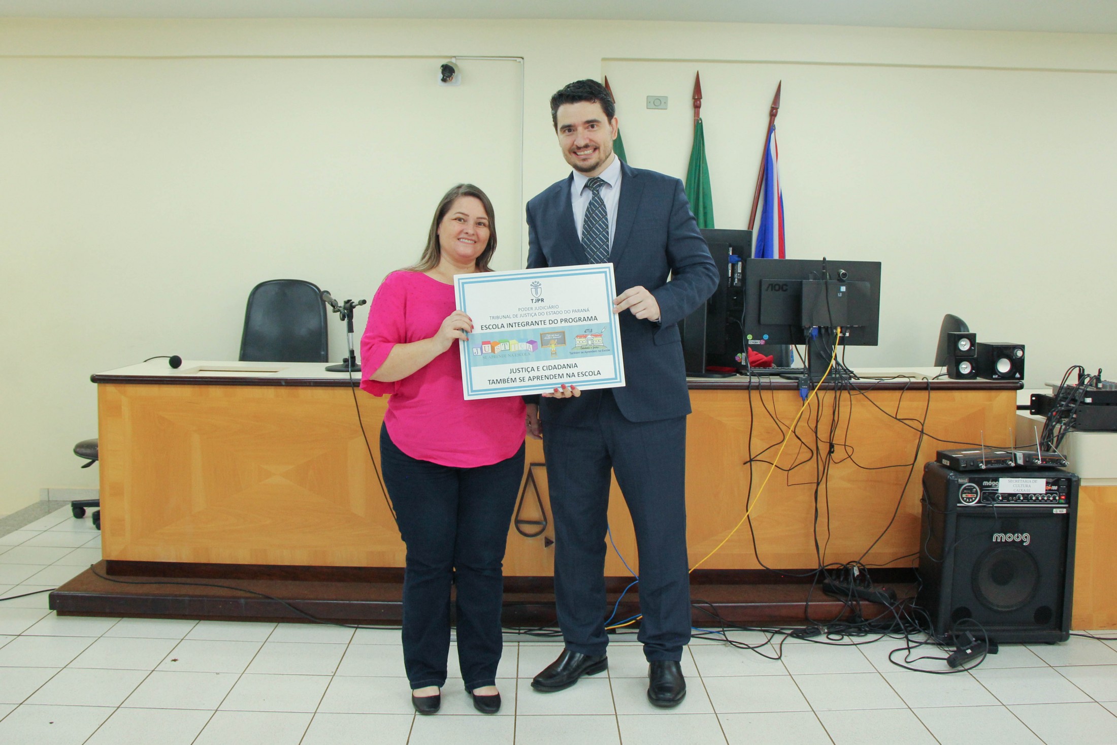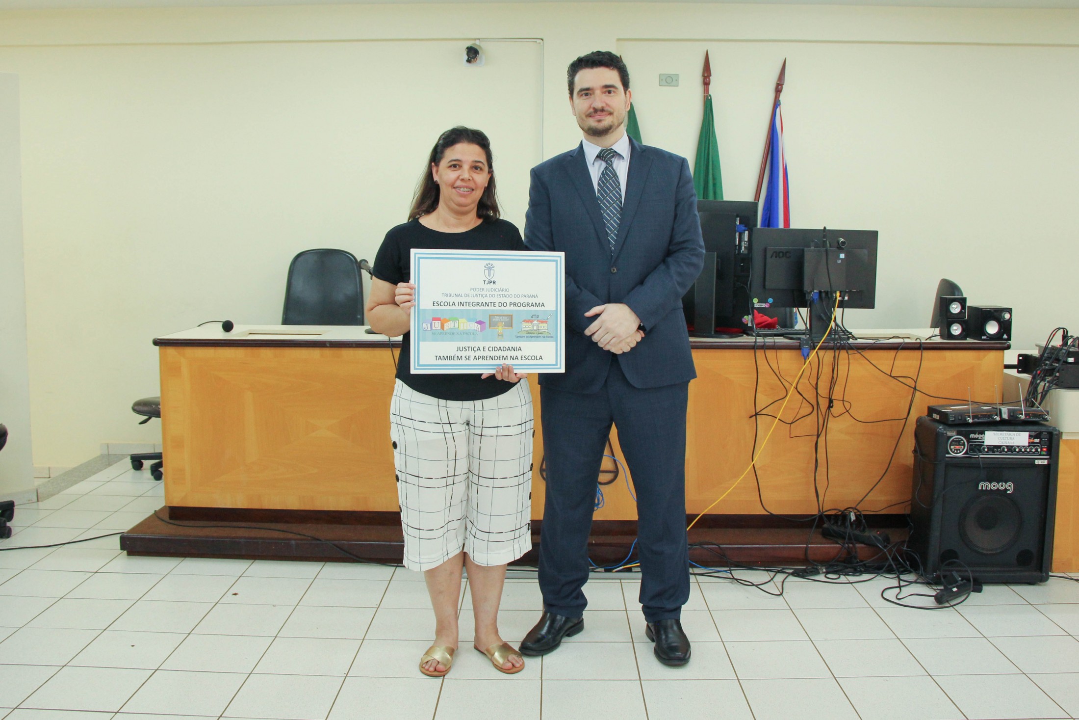 A cerimônia contou, ainda, com o teatro “Justiça e Cidadania”, dos alunos do 5º ano B, da Escola Municipal Castro Alves; e um número de dança dos estudantes do 5º ano A, da Escola Municipal Jorge Moreira da Silva. Ao final, as diretoras das instituições de ensino receberam placas de participação no programa.
