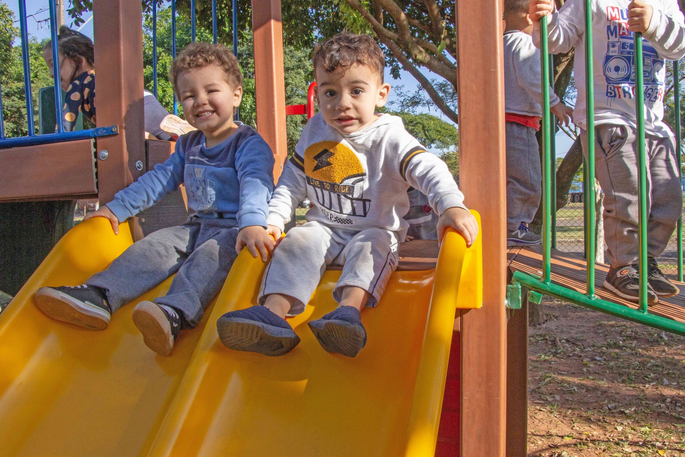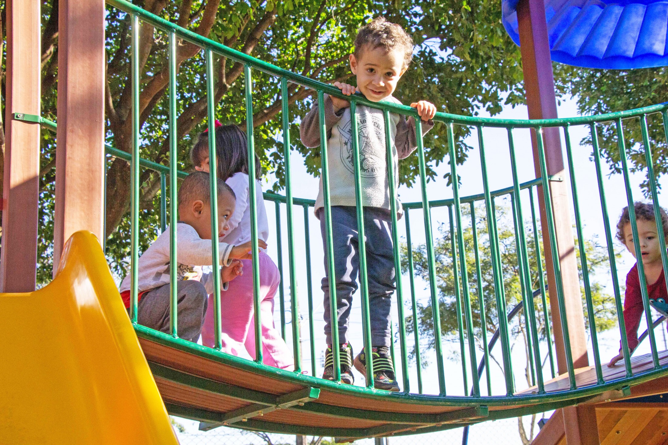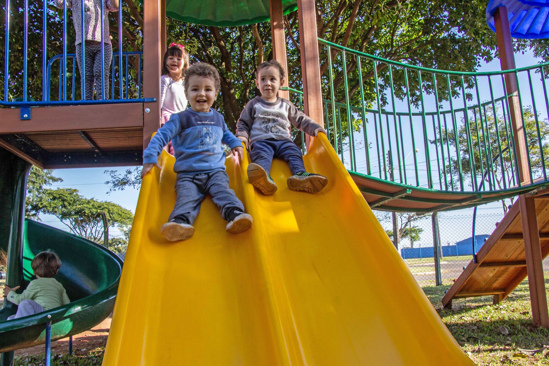 A permanência nas escolas municipais Castro Alves e Ovídio Luiz Franzoni, bem como nos centros municipais de educação infantil (CMEIs) São Francisco de Assis, Lúcia Reschetti Cerqueira e Aidê Eugênio Biazzi, está muito mais divertida. Isso, porque, a Secretaria Municipal de Educação instalou, nas cinco instituições de ensino, novos parques infantis.