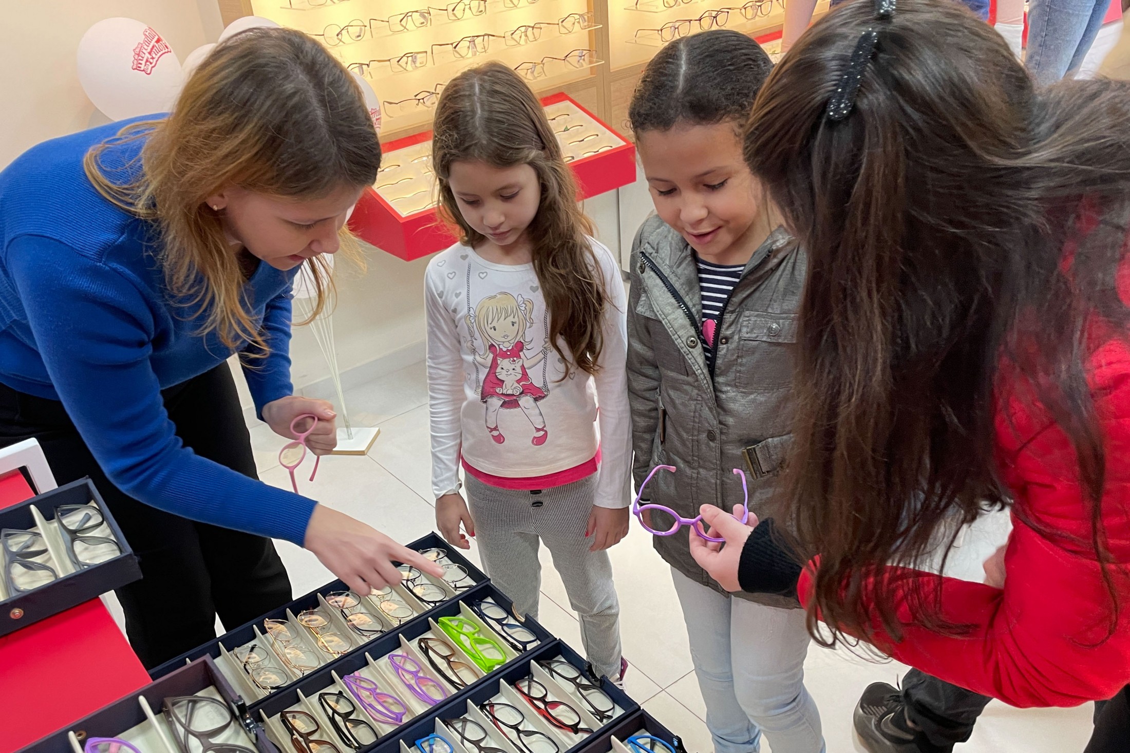 Na manhã da última quinta-feira (20), a aluna da Escola Municipal João Bueno de Godoy, do distrito de Vidigal, Sophia Moreira Silva, escolheu o seu primeiro óculos de grau. Apesar de sentir dificuldade há algum tempo, a menina de 10 anos só teve o diagnóstico após participar do projeto Saúde Visual. A iniciativa, que tem como objetivo detectar problemas de visão em crianças matriculadas nas escolas municipais, encaminhá-las para consulta médica e fornecer os óculos gratuitamente, teve início em abril, e já avaliou a acuidade visual de quase 700 estudantes.