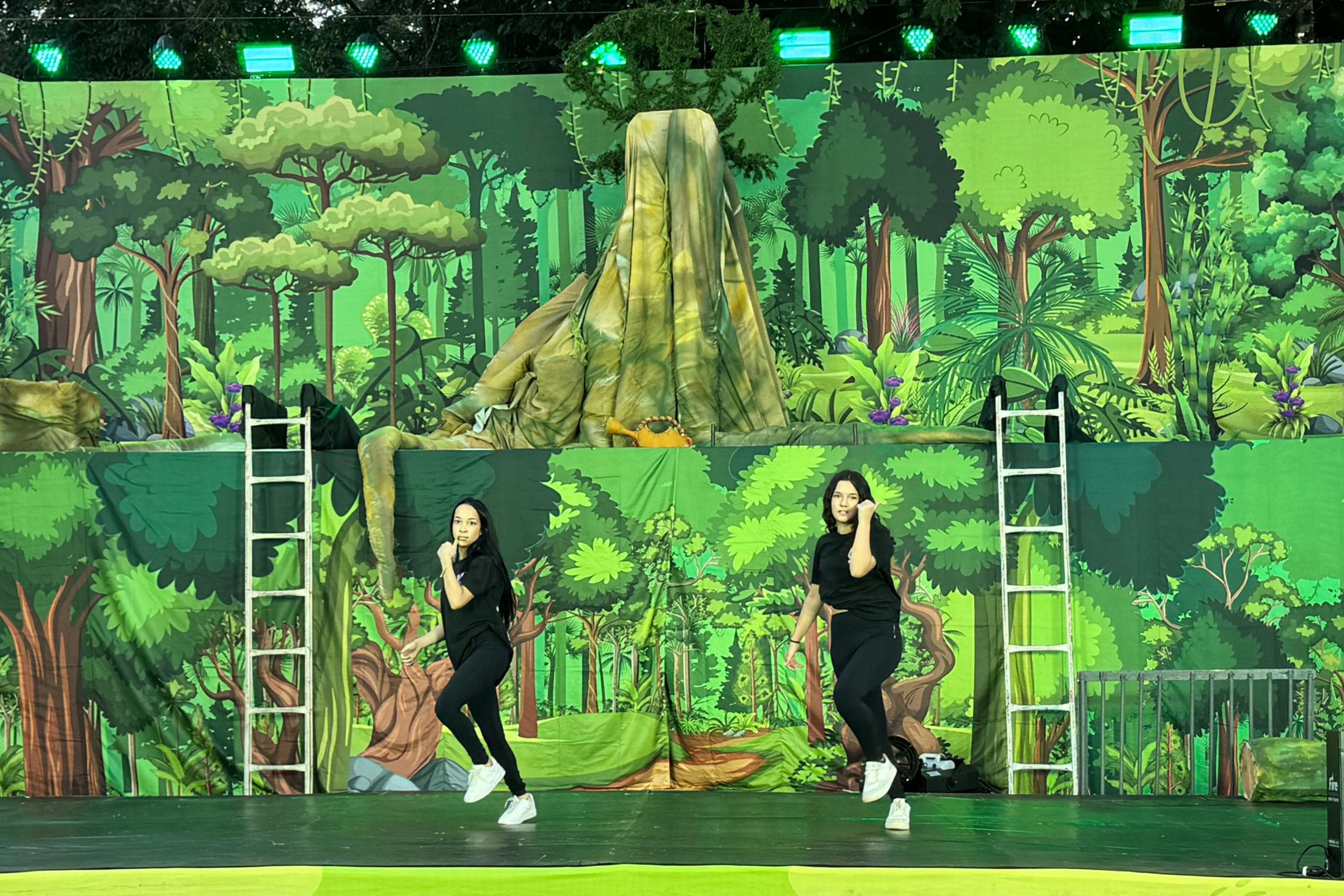 Por fim, o Espetáculo "Florestas Urbanas", encenado pelo renomado Espaço Sou Arte, encantou o público com uma apresentação lúdica, bem-humorada e reflexiva, explorando questões cruciais relacionadas à educação ambiental e à preservação da natureza. O número mesclou dança, teatro e circo, proporcionando uma experiência única aos espectadores, com acrobacias de solo, malabares, paradas, adágios, pirâmides humanas, entre outros.