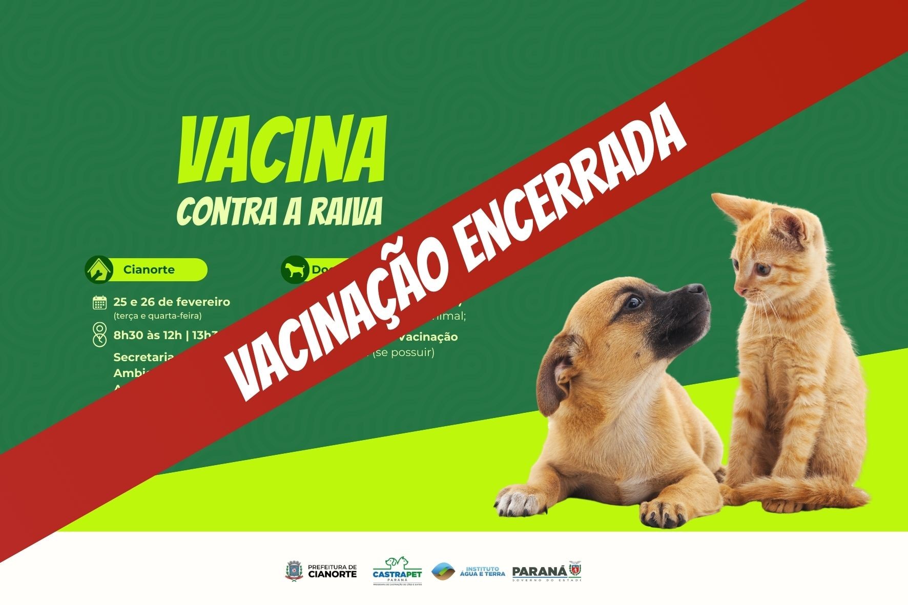 A vacinação contra a raiva foi um sucesso! As doses se esgotaram e a campanha está encerrada.