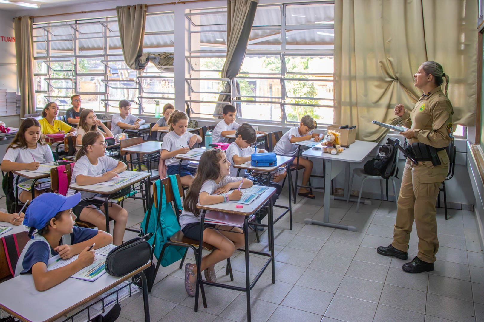 Os assuntos são trabalhados com uma apostila preparada exclusivamente para a idade das crianças. “Esta é uma iniciativa maravilhosa, que vem num momento importante na vida do estudante, que está formando seu caráter. Lembrando que educar as crianças e adolescentes para serem capazes de fazer boas escolhas, de forma segura e responsável, é um esforço coletivo. O que os instrutores do Proerd ensinam em sala de aula precisa do reforço e apoio das famílias. Juntos, polícia, escola e família, podemos fazer a diferença”, afirmou a secretária municipal de Educação, Jakeline Plácido Marcon. Em novembro, todos participarão da solenidade de formatura e receberão certificados do programa.