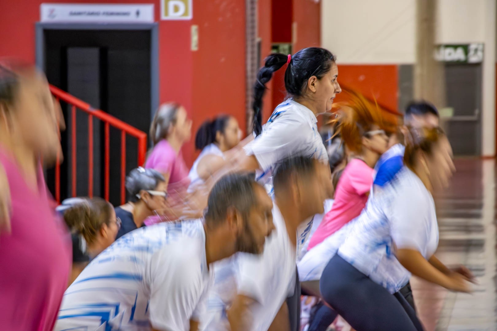 As chuvas de caíram nessa terça-feira (11) não desanimaram o público do Aulão de Funcional, uma das ações do Movimenta Mulher. A atividade foi transferida para o Ginásio de Esportes da Unipar e as participantes tiveram momentos de atividade física aliada a muita diversão, sob o comando do professor Silvinho Floriano. “As participantes saíram do aulão motivadas e felizes. Foi, sem dúvidas, sensacional”, destacou a secretária municipal de Políticas Públicas para Mulheres, Crianças e Adolescentes, Stephanie Piveta Azevedo.