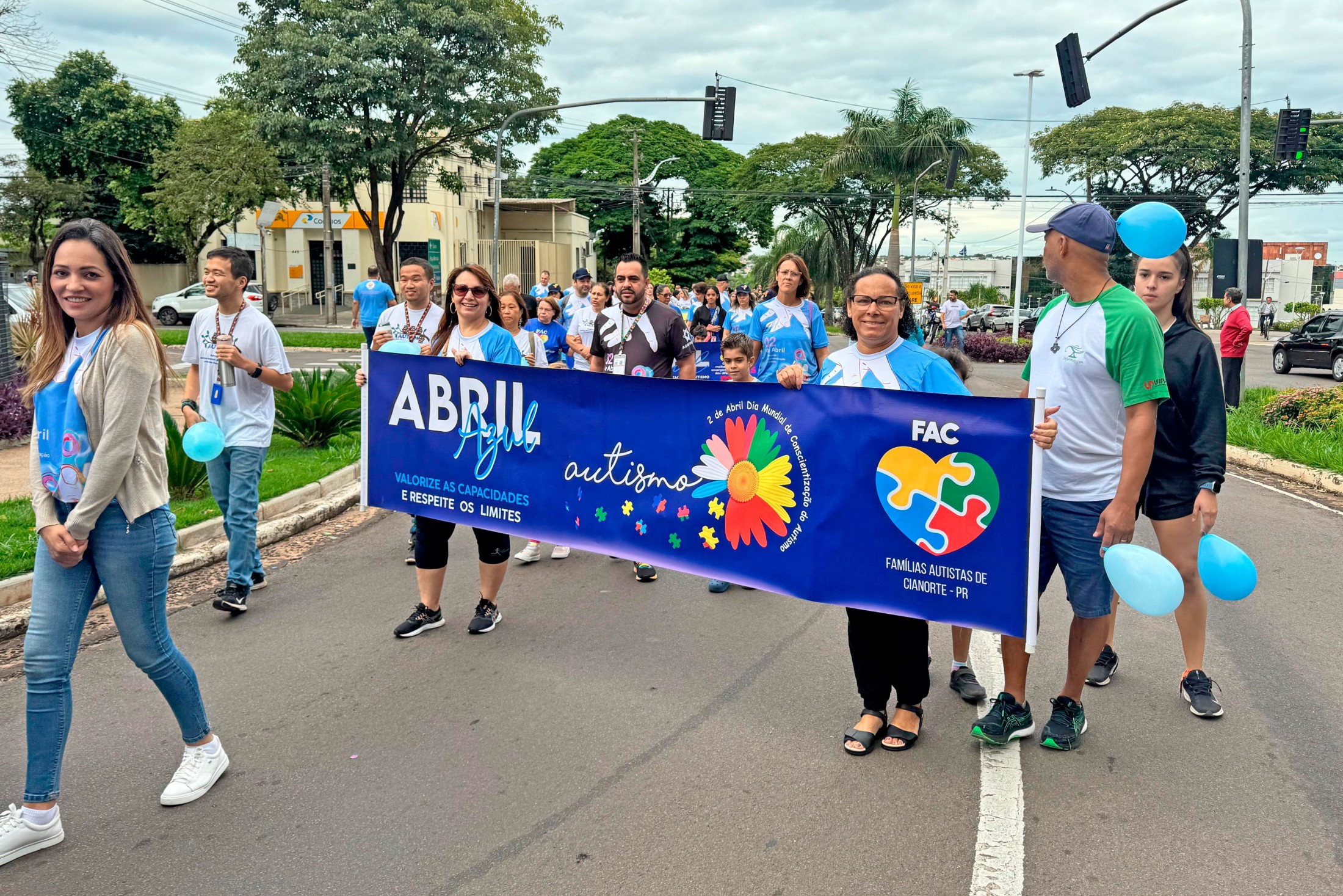 No último sábado (05), Cianorte foi palco da 4ª edição da Passeata Abril Azul. Organizado pela FAC (Associação das Famílias de Autistas de Cianorte), em parceria com a Prefeitura, o evento já se consolidou como uma tradição local, ganhando ainda mais relevância ao ser incluído oficialmente no calendário municipal, por meio da Lei nº 5.715/2025, que instituiu a passeata como uma das atividades obrigatórias do Abril Azul — mês dedicado à conscientização sobre o Transtorno do Espectro Autista (TEA).