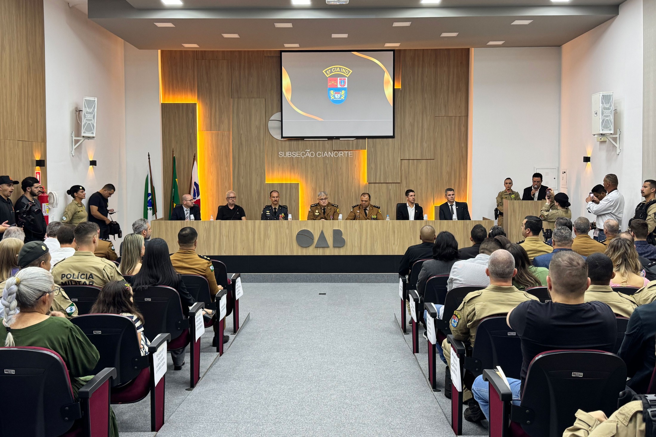 A manhã dessa quarta-feira (09) foi de comemorações na área de segurança pública em Cianorte. Isso, porque, o comando da 5ª Companhia Independente de Polícia Militar (5ª CIPM) promoveu uma solenidade para celebrar os seus 11 anos de instalação. A iniciativa foi nas dependências da Ordem dos Advogados do Brasil (OAB) Cianorte e contou com a presença de autoridades civis, oficiais, praças e representantes da imprensa. O evento enalteceu o trabalho desenvolvido pela corporação, bem como homenageou civis e militares.