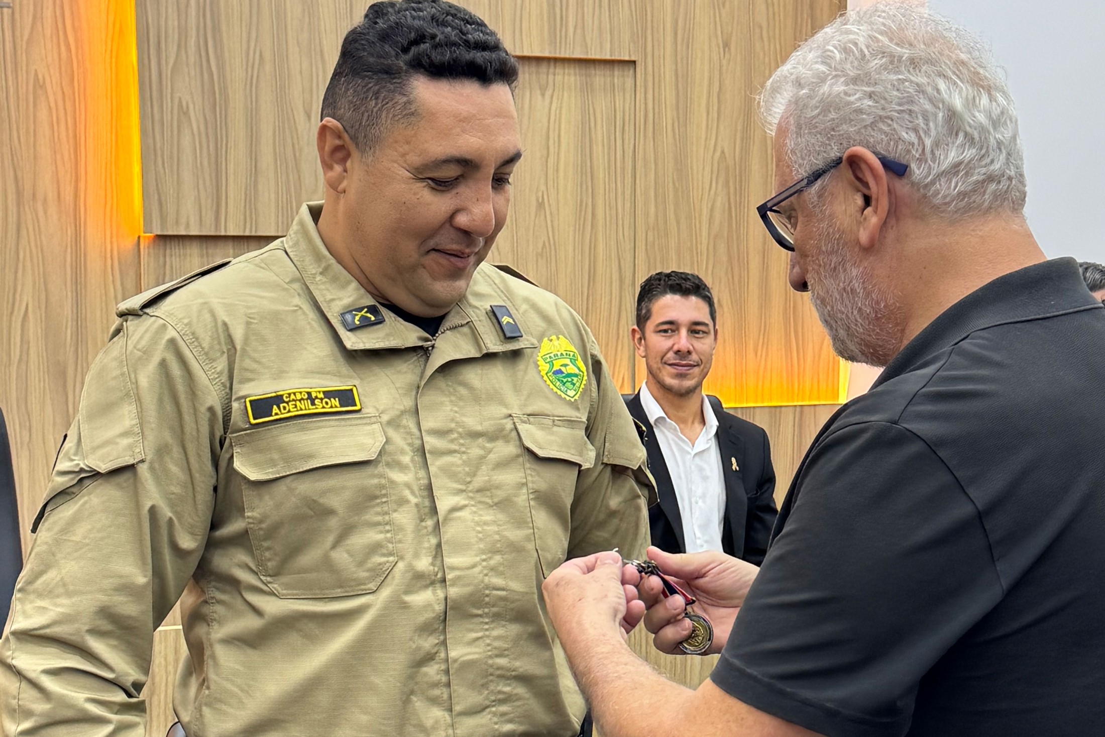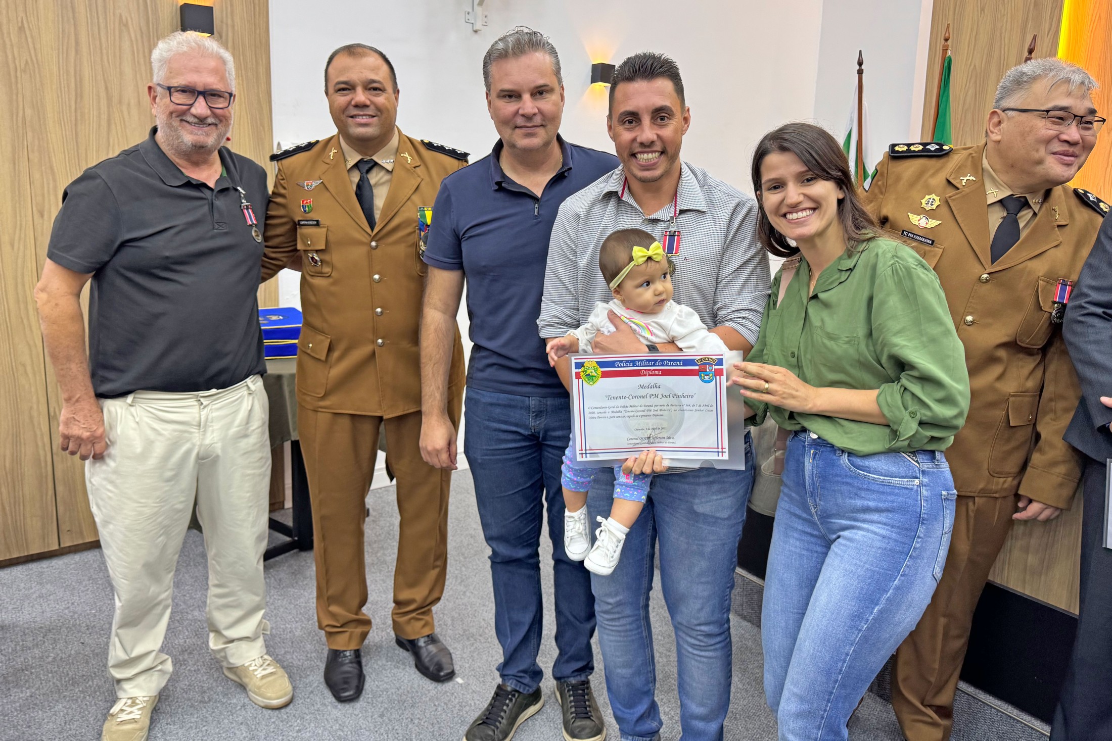 A cerimônia teve início com a execução do Hino Nacional, seguido por um vídeo sobre a instituição. Então, foi realizada a entrega da medalha “Tenente Coronel PM Joel Pinheiro”, criada para homenagear militares e autoridades civis que se destacam pelos serviços prestados à segurança pública, na área de abrangência da 5ª CIPM. Foram agraciados o prefeito de Jussara, Moacir Valentini (Tatinha); o juiz da Vara Criminal de Cianorte, Dr. Diego Gustavo Pereira; o secretário municipal de Esporte e Lazer de Cianorte, Lucas Meira Pereira; e o diretor da empresa Avenorte, Hugo Leonardo Bongiorno.