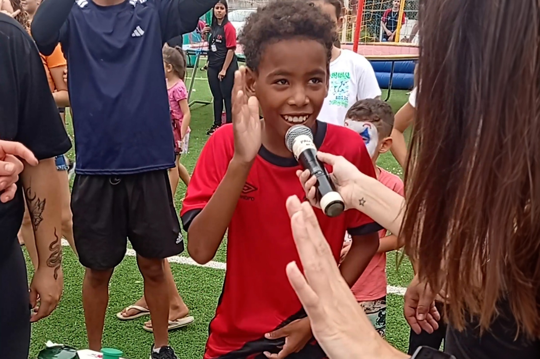 No último sábado (12), o Meu Campinho do Jardim Morada do Sol recebeu muita diversão, alegria e brincadeiras. Isto porque, o Rua de Lazer marcou o dia dos moradores da região. O projeto, desenvolvido pela Secretaria Municipal de Esporte e Lazer (SMEL), em parceria com o curso de Educação Física da Unipar, levou pintura facial, atividades recreativas e brinquedos infláveis para as crianças presentes.