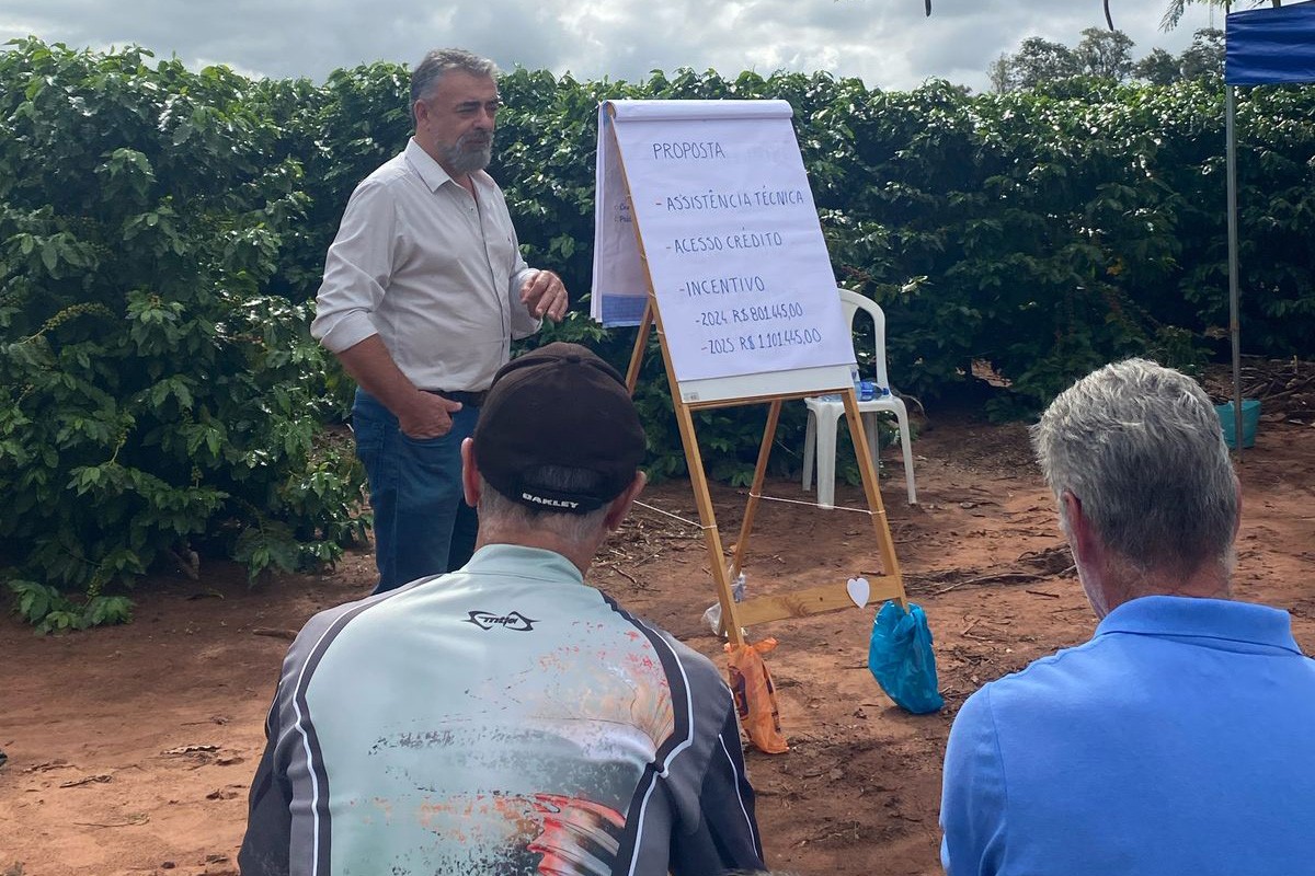 Na sequência, o técnico Adenir Volpato, discorreu sobre a produção do café e explicou como é feito o cálculo da produtividade. Então, o representante da empresa Jacto Pulverizadores fez uma apresentação sobre os maquinários que podem ser utilizados na lavoura. “Foram momentos muito valorosos, de troca de experiências e aprendizado. Estamos satisfeitos com o programa, que tem conseguido fortalecer a produção cafeeira local, por meio de suporte técnico e incentivos aos produtores, expandindo as áreas de cultivo, de forma sustentável, ampliando a produção através da implantação de lavouras com condições adequadas de manejo e, consequentemente, elevando a produtividade”, finalizou o secretário.