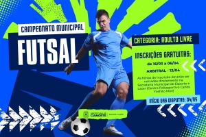 A edição 2026 do tradicional Campeonato Municipal de Futsal terá as inscrições abertas às equipes na próxima segunda-feira (16). Os interessados em participar da competição têm até o dia 06 de abril para realizar o cadastro, de forma gratuita e presencial, na Secretaria Municipal de Esporte e Lazer (SMEL), localizada no Centro Poliesportivo Carlos Yoshito Mori.