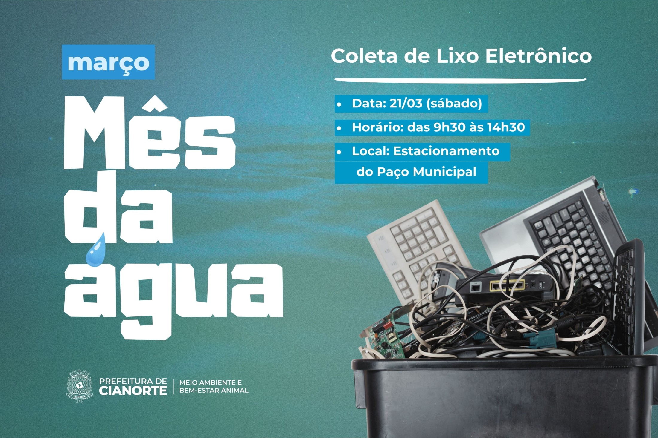 A iniciativa integra a programação especial alusiva ao Mês da Água e é aberta a toda a população. “O objetivo é promover a sensibilização ambiental para o descarte consciente de equipamentos que já não têm mais utilidade, evitando que sejam descartados em locais inadequados e causem a contaminação dos recursos hídricos e do solo”, explica a secretária da pasta, Daniella Carraro Parreiras.
