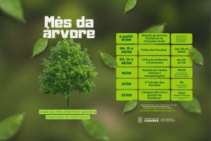 A Prefeitura de Cianorte, por meio da Secretaria de Meio Ambiente e Bem-Estar Animal, preparou uma programação especial para setembro, o Mês da Árvore, com uma série de atividades que incentivam a sensibilização e a participação popular na preservação ambiental. As ações, que vão desde plantio de mudas e trilhas ecológicas até uma corrida, buscam fortalecer o vínculo da comunidade com a natureza.