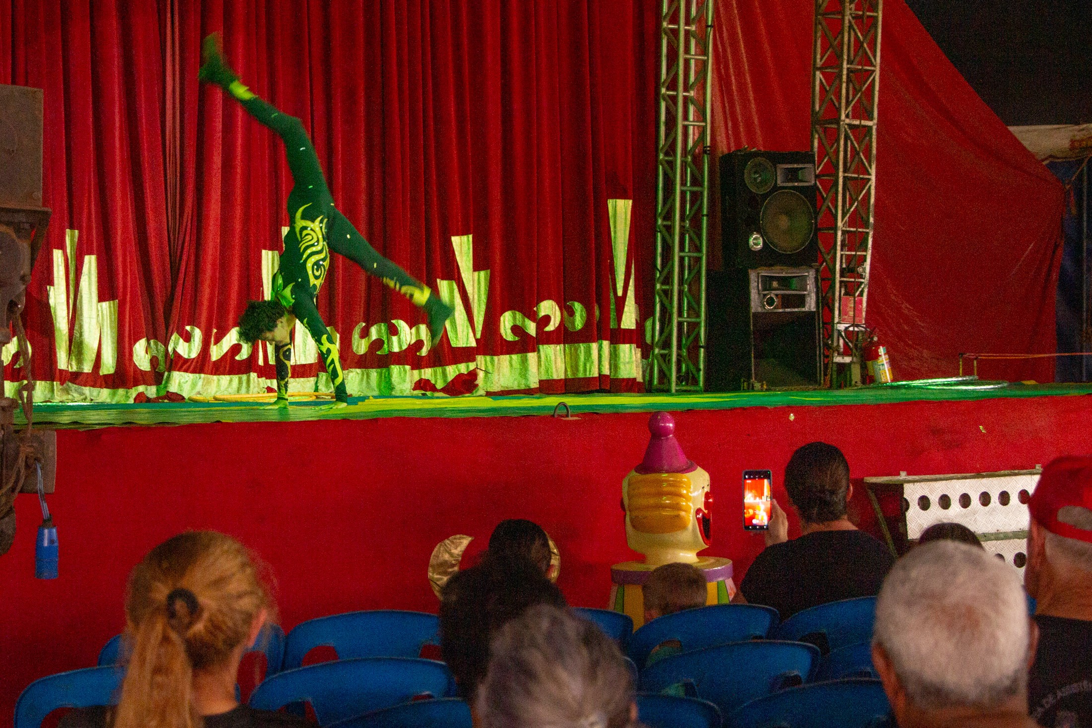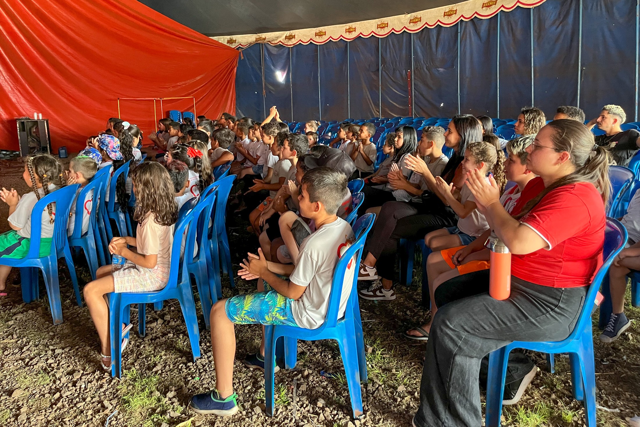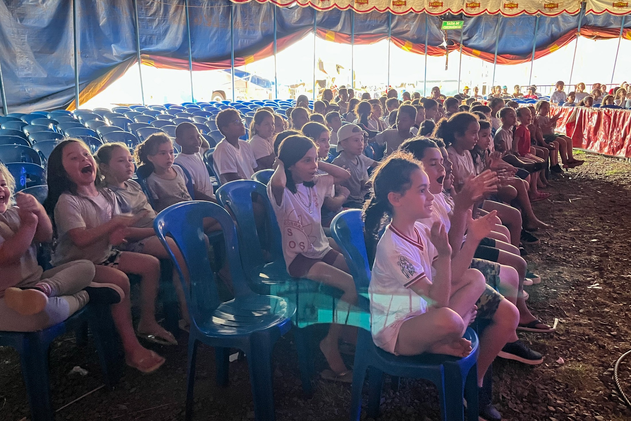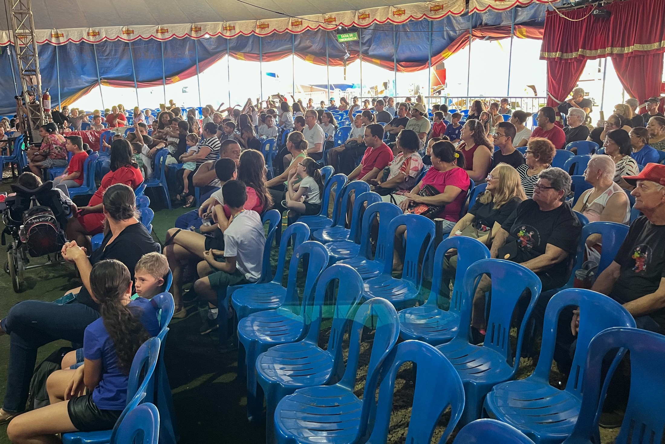 A lona do Circo Rakmer se encheu de risadas, cores e encanto na tarde desta quinta-feira (11), em um espetáculo gratuito e especial para o público atendido pela Secretaria Municipal de Assistência Social e entidades parceiras. A iniciativa do circo, que está em Cianorte desde o dia 5 e permanece até o dia 14 de setembro, proporcionou uma tarde de pura magia para cerca de 400 pessoas, entre crianças, adolescentes, idosos e profissionais.
