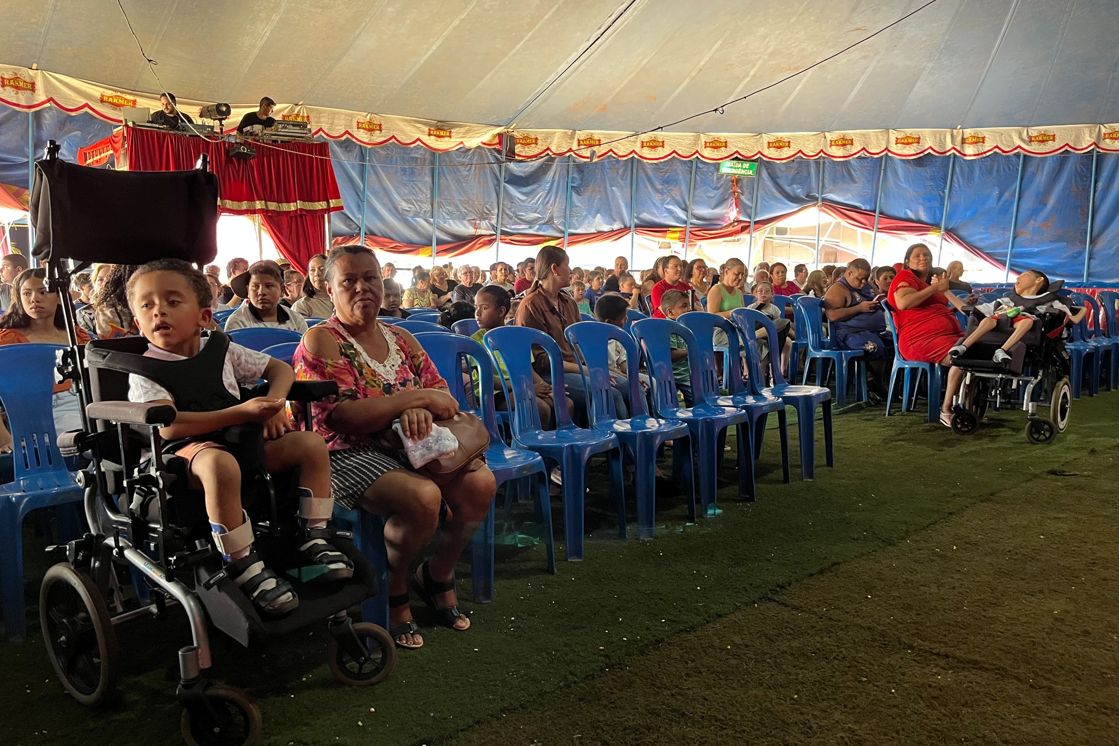 Entre os grupos que prestigiaram a apresentação estavam cerca de 100 crianças e profissionais do Serviço de Convivência e Fortalecimento de Vínculos (SCFV) Tia Sé, e 35 do SCFV Fortalecer, do distrito de São Lourenço. O CRAS 2 marcou presença com 30 idosos, enquanto 20 usuários do CRAS 1 e da unidade de atendimento de Vidigal também participaram. Além disso, a Casa de Acolhimento Laços de Amor levou 20 crianças, e o programa de Medida Socioeducativa, 20 adolescentes. A tarde foi ainda mais especial para 100 alunos da APAE, que desfrutaram do número acompanhados de seus responsáveis e profissionais.