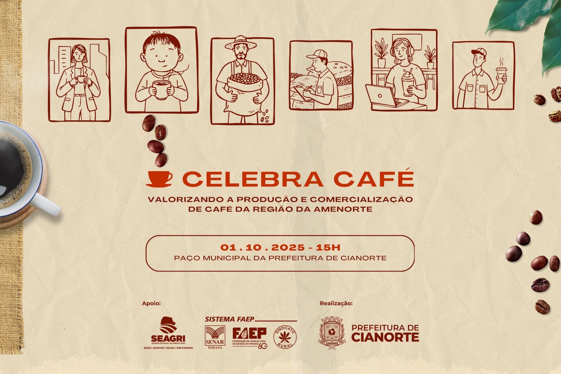 A Secretaria Municipal de Agricultura, com o apoio do Sistema FAEP e do Sindicato Rural, promove nesta quarta-feira, 1º de outubro, o Celebra Café, um evento dedicado a enaltecer o aroma e o sabor do grão de alta qualidade produzido na região. A iniciativa visa valorizar a produção local, premiar os melhores cafeicultores e fortalecer a agroindústria regional.