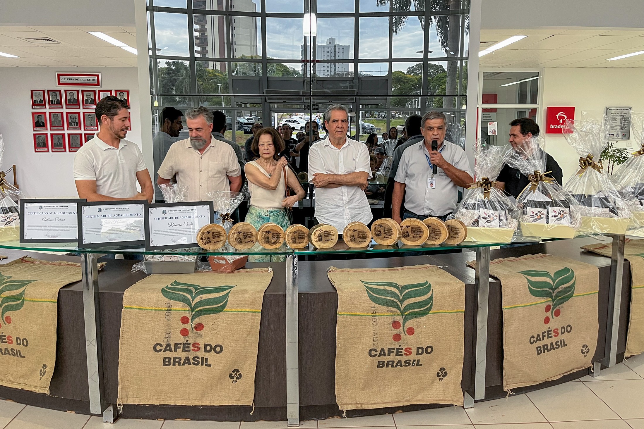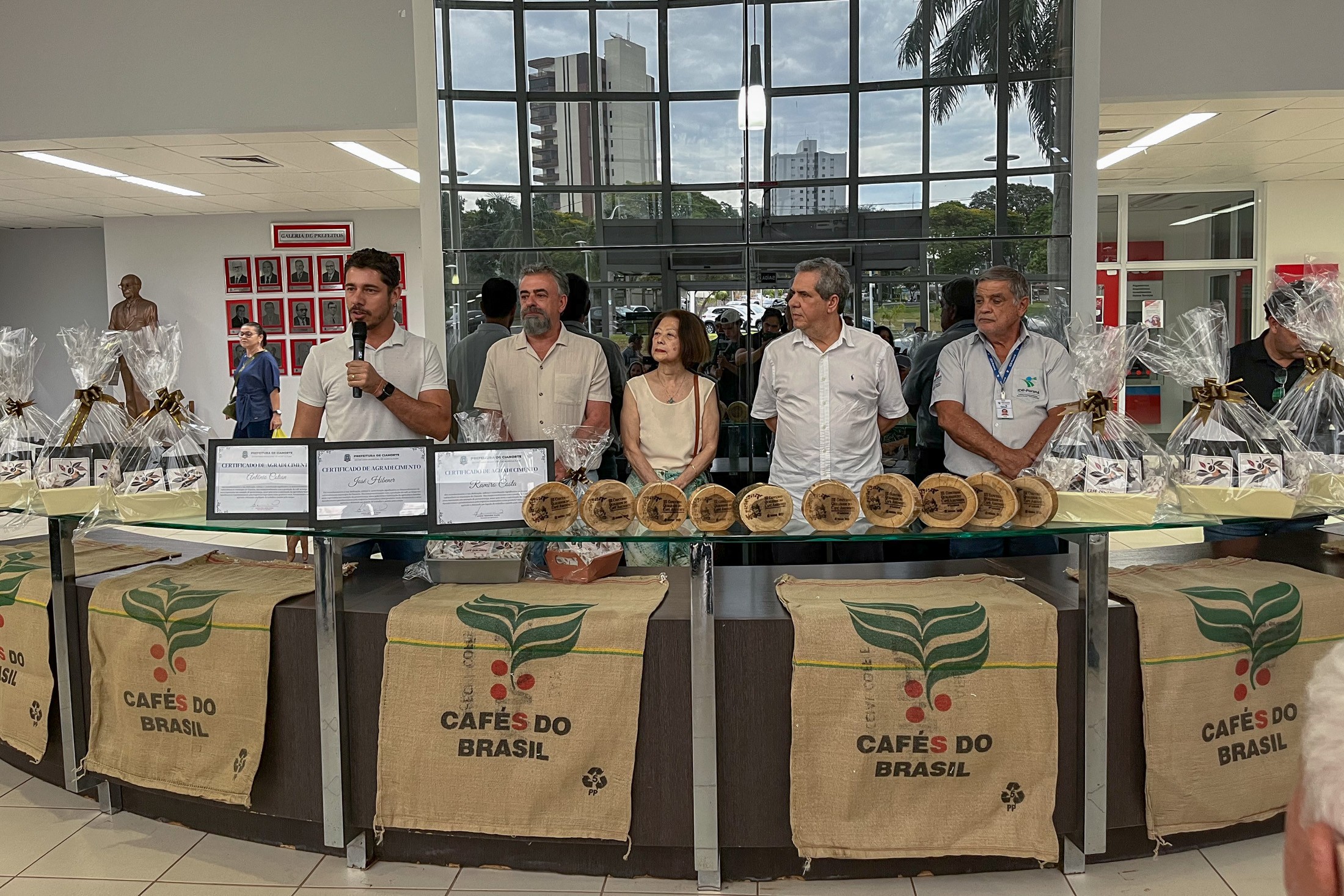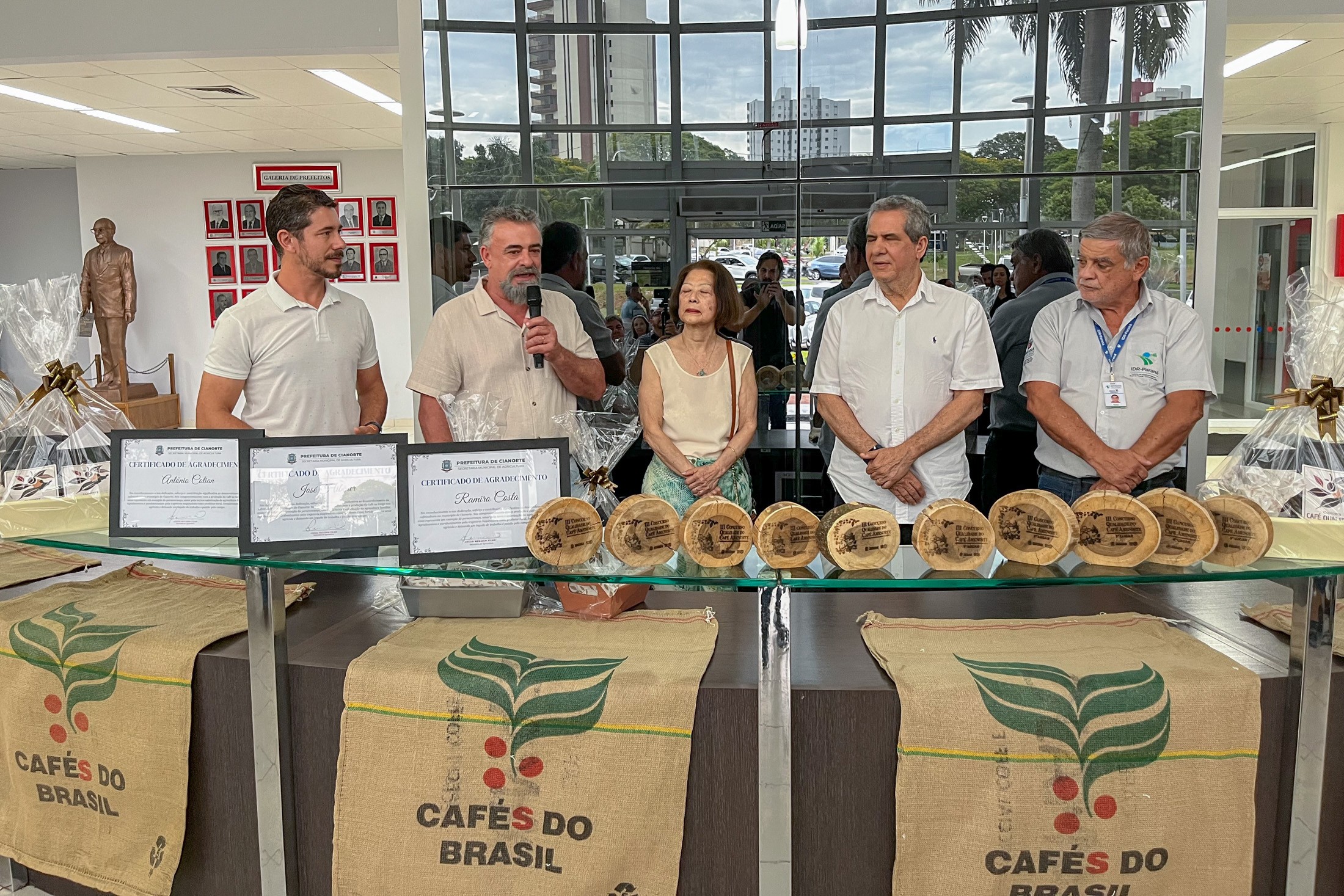 PRESENÇAS: Participaram da iniciativa o presidente da Câmara Municipal, Victor Hugo Davanço; os vereadores Robson Fagundes e Marisa Franco; o gerente do Instituto de Desenvolvimento Regional (IDR), Paulo Roberto Preto; o chefe do Escritório Regional da Secretaria de Estado da Agricultura e Abastecimento (SEAB), Francisco Cascardo Neto; a viúva de Luiz Ferraz de Mesquita Filho, um dos grandes incentivadores da cultura, que batiza o Programa Municipal de Expansão e Qualificação da Cafeicultura, Wilma Mesquita; além de secretários municipais.