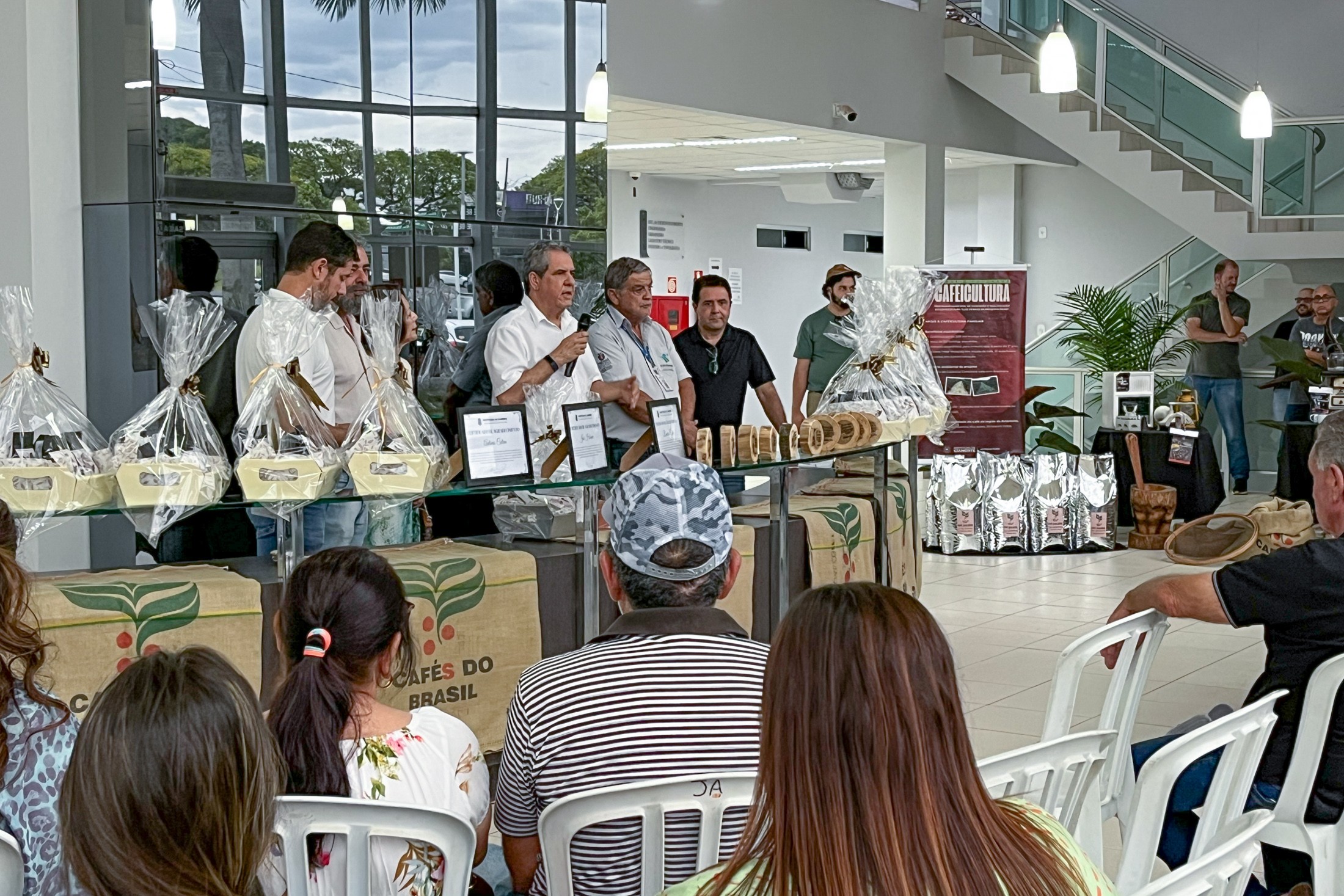 O evento, que ocorreu nas dependências da Prefeitura, nessa quarta-feira, teve a missão de fomentar a agroindústria e enaltecer o sabor do café de alta qualidade. O público, que incluía produtores, empresários, servidores públicos e amantes da bebida, pôde participar de uma degustação especial, fazendo uma importante comparação entre cafés comuns e a excelência dos produtos de primeira linha. Houve, também, a palestra de Daniel Lochims sobre “Nutrição e fisiologia na qualidade da lavoura do café”, aprofundando o conhecimento essencial para a excelência do produto. Em seguida, o toque de tradição ficou por conta da moda de viola, executada pelos próprios servidores da Secretaria de Agricultura.