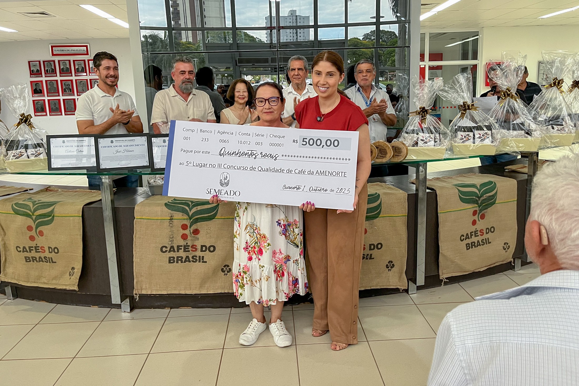 O ponto alto foi a cerimônia de premiação do III Concurso Qualidade do Café Amenorte 2025. Os vencedores, que já se destacaram no Cianorte Festival, receberam um cheque simbólico, reconhecendo o alto padrão de qualidade e dedicação. Na sequência, e aproveitando o espírito da data, o Leilão de Lotes Especiais aqueceu o mercado. Foram leiloados nove lotes, de 10 kg cada.