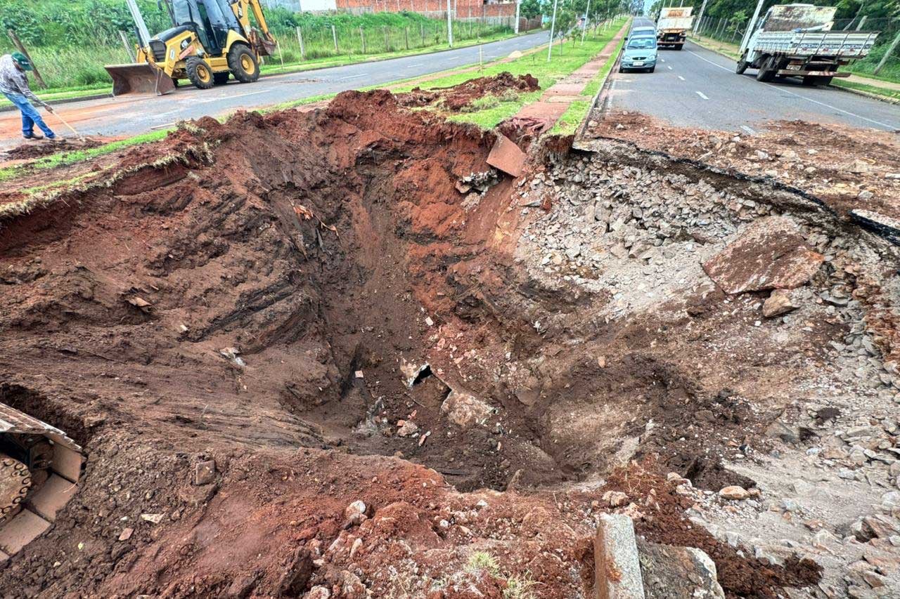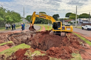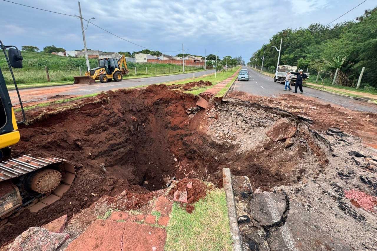 A Prefeitura de Cianorte, por meio da Secretaria Municipal de Obras e Serviços Públicos, comunica a interdição total da Avenida José da Silveira, no trecho entre as ruas José Laguilo e Castanheiras, na tarde desta quinta-feira (02). O bloqueio se deve a uma cratera de grandes proporções que se abriu na pista.