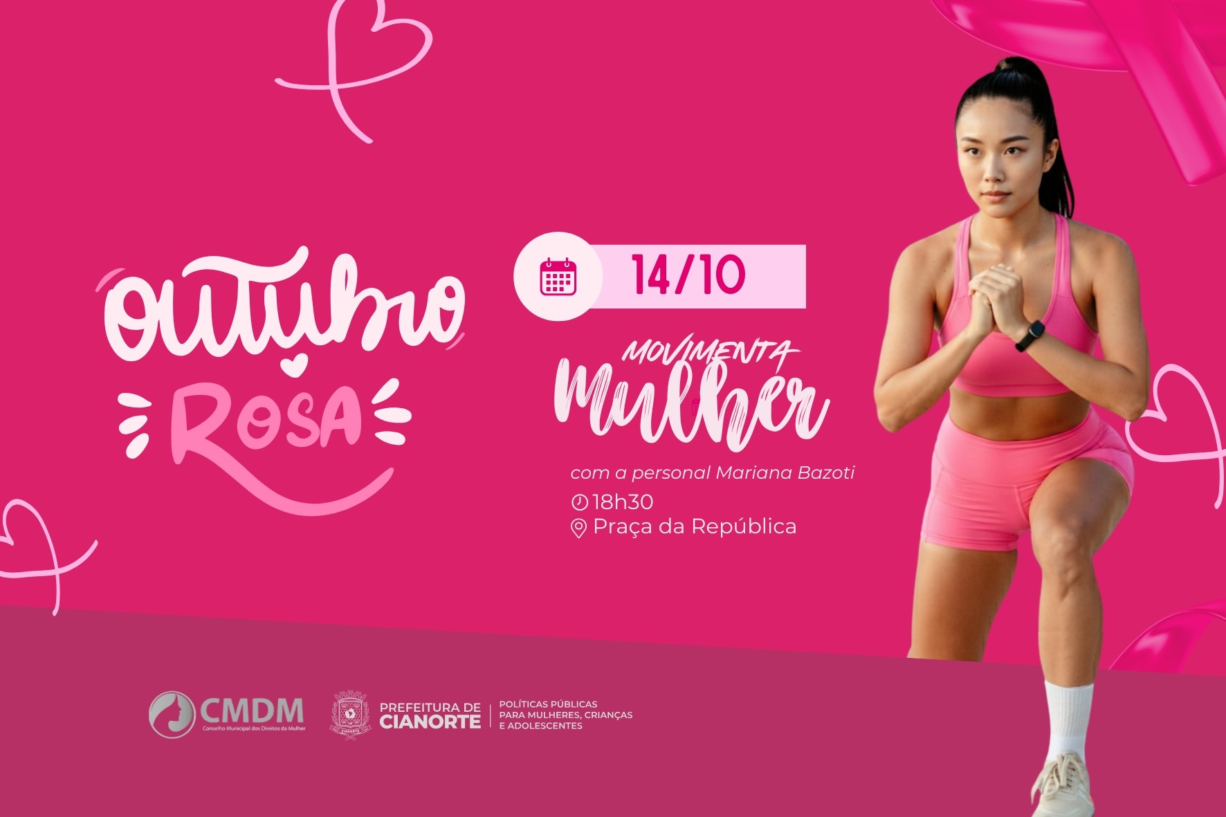 A atividade faz parte do Programa Movimenta Mulher e será coordenada pela personal trainer Mariana Bazoti, integrando a programação do Outubro Rosa, mês dedicado à conscientização sobre a prevenção e o diagnóstico precoce do câncer de mama e à promoção da saúde da mulher de forma integral.