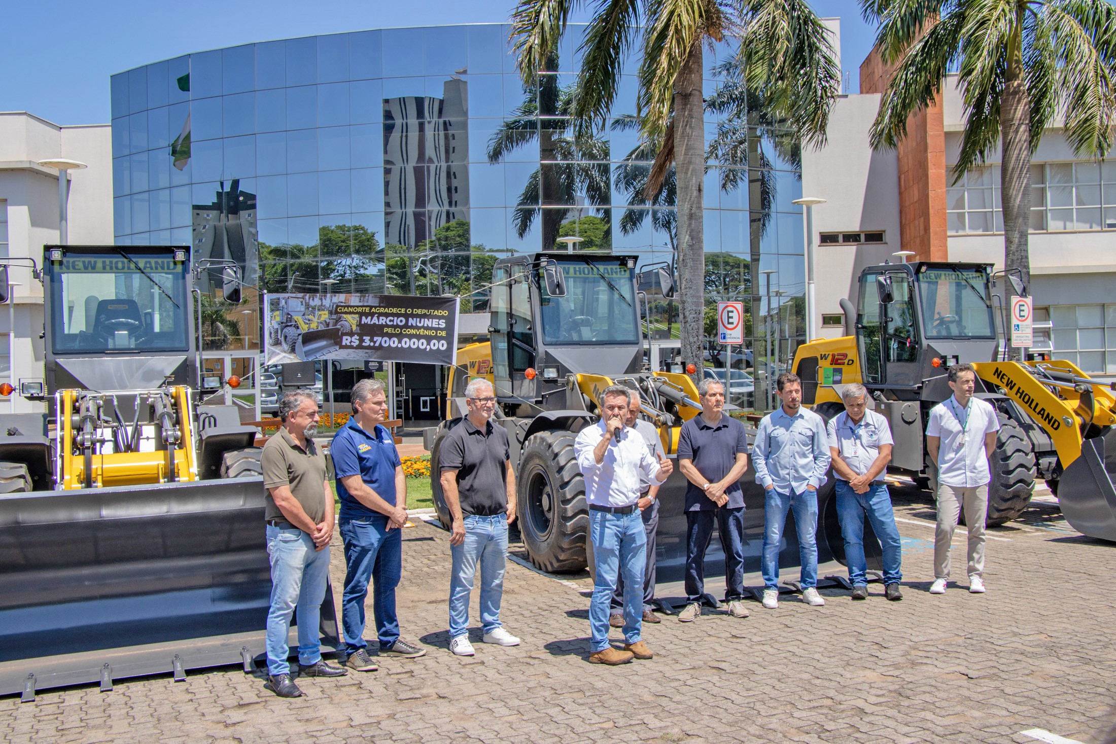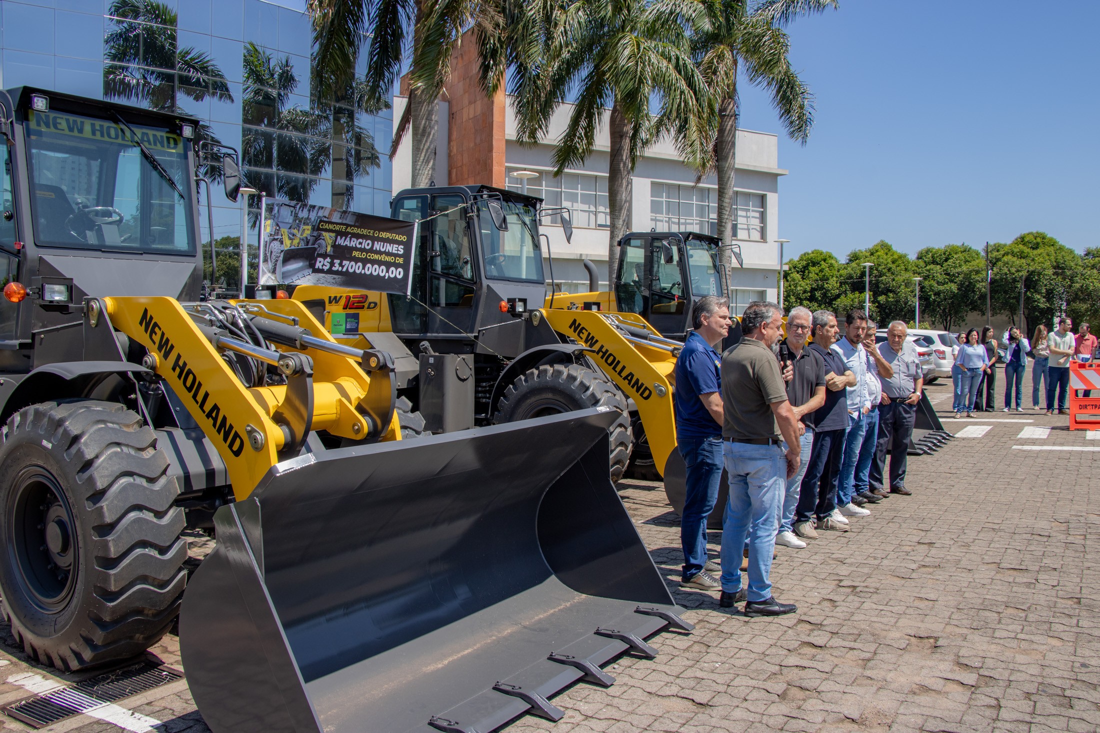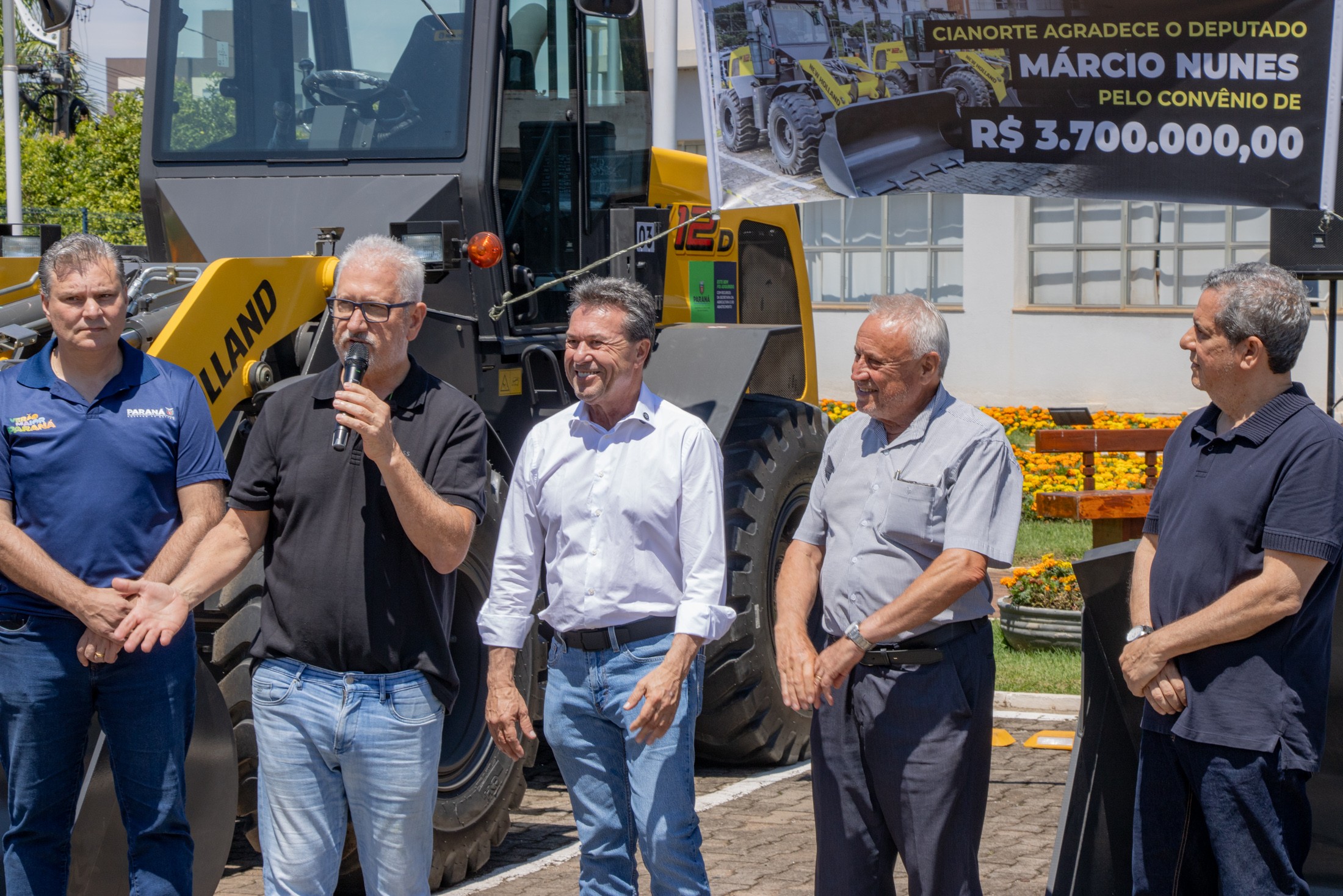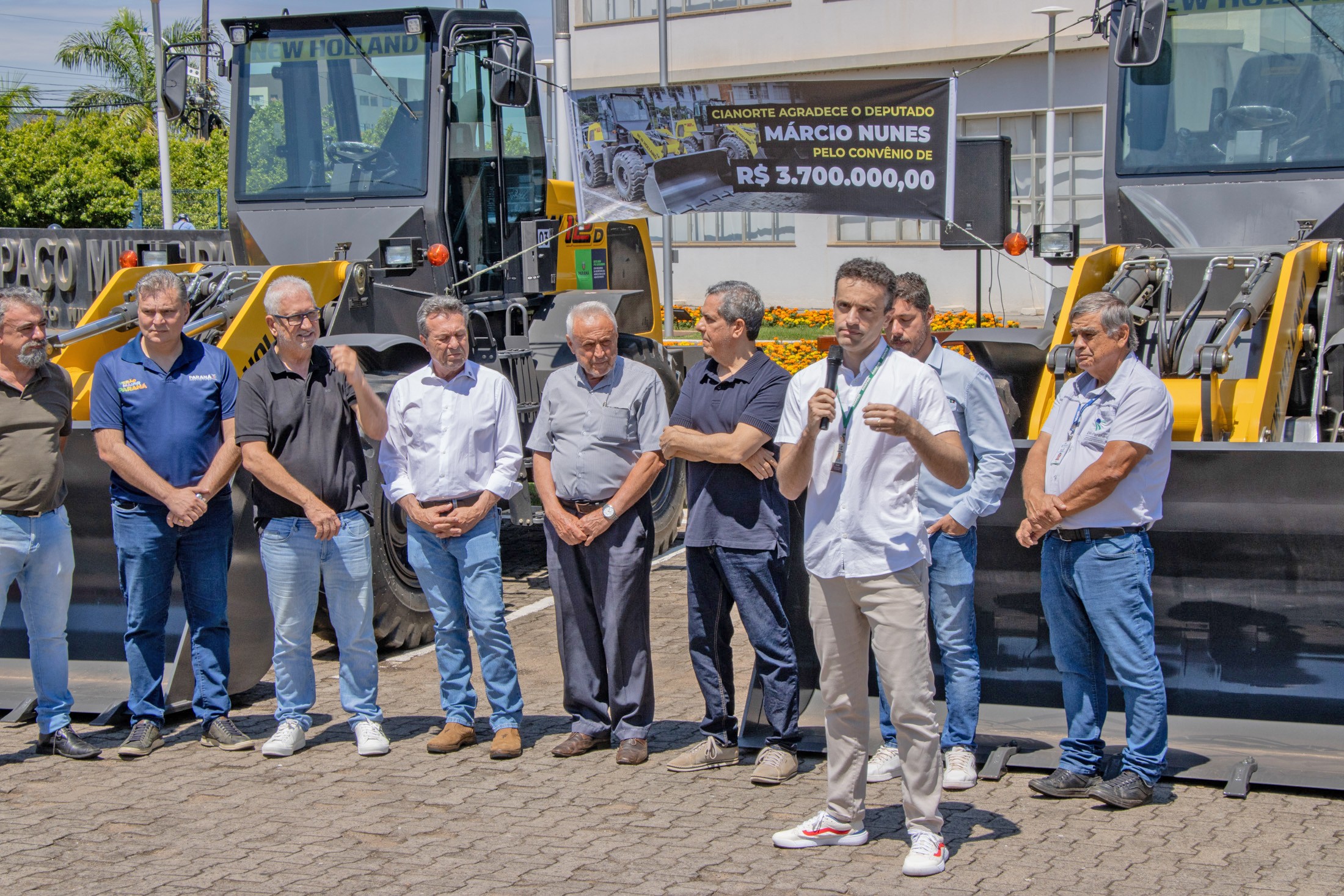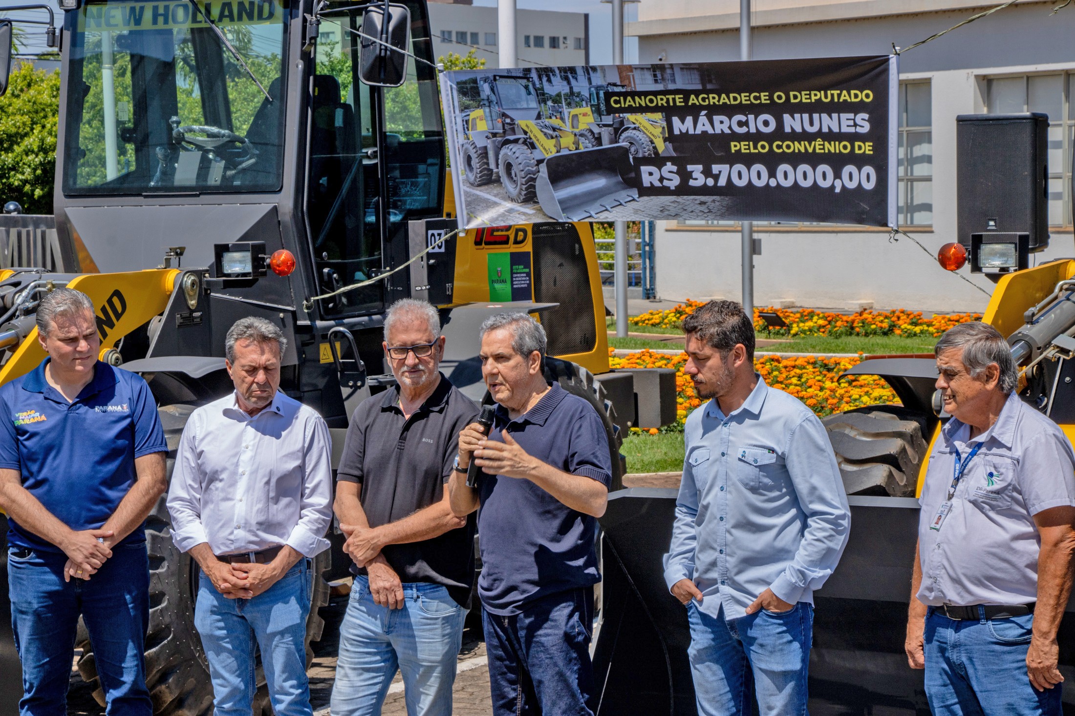 “O Paraná é um estado vocacionado para o agronegócio e o nosso sucesso depende diretamente da estrutura que oferecemos ao produtor. A entrega destas três pás carregadeiras a Cianorte é a materialização do compromisso do Governo do Estado em investir na base, no campo. Estes equipamentos representam mais qualidade, mais produtividade e mais competitividade para a agricultura cianortense”, destacou o secretário da Agricultura e do Abastecimento do Paraná, Marcio Nunes.